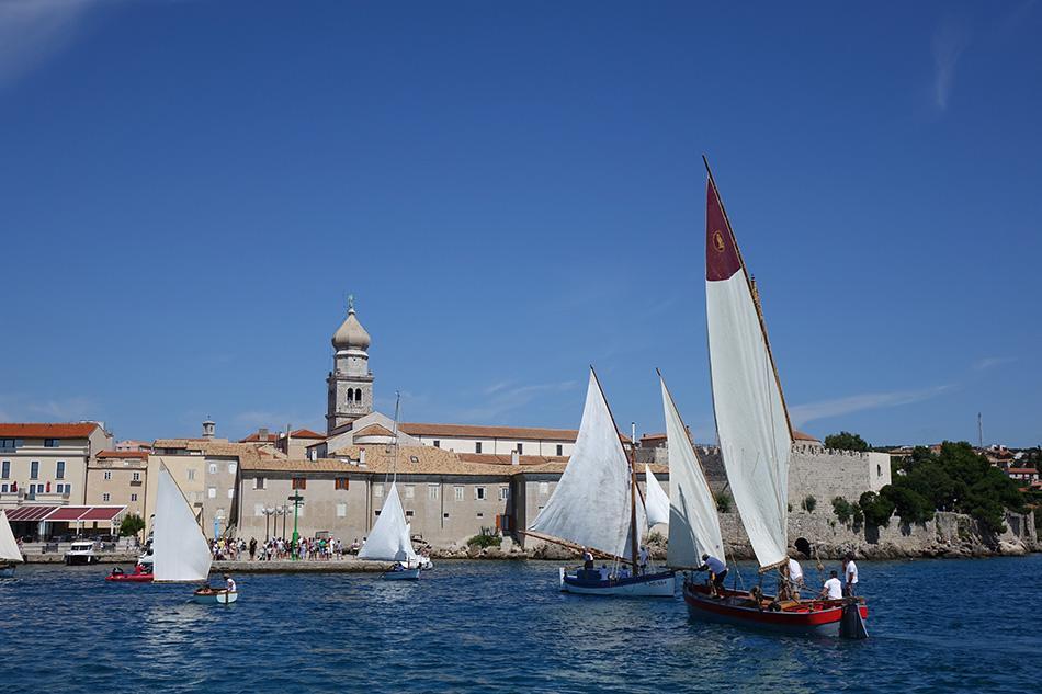Taj vjekovni ures grada, razapeta jedra na drvenim brodicama, danas bude uspomenu na vremena kada je kroćenje vjetra bila izuzetna vještina, a pomorstvo temelj ekonomije. Opstanak na nekoć izoliranom otoku bio je gotovo nezamisliv bez ribolova, bez prijevoza maslinovog ulja ili vina, bez pomorstva. Tako je bilo oduvijek ili barem unatrag tri tisuće godina koliko traje urbana prošlost Krka. No naš drevni grad i danas živi svoju tradiciju u očuvanoj povijesnoj jezgri, a njegovom lukom i danas prolaze brodovi dovodeći brojne posjetitelje željne istinskog doživljaja povijesnog grada. Zato je doživljaj regate s Gradske rive, zidina ili Frankopanskog kaštela, uistinu poseban kao što je poseban i Plav, najstariji jedriličarski klub na istočnojadranskoj obali, za kojim je zavidna 140. obljetnica, i kojem je, kao idejnom začetniku, iznova pripala čast da, uz značajnu podršku Grada Krka, Turističke zajednice Grada Krka i Vecle d.o.o., povede organizaciju ovog atraktivnog događanja. Naime, njegovo premijerno izdanje održano je 1998. godine s ciljem očuvanja, ali i predstavljanja bogatog otočnog maritimnog nasljeđa, što je Krčkim jedrima priskrbilo naslov najstarije regate tradicijskih barki na ovome dijelu Jadrana.