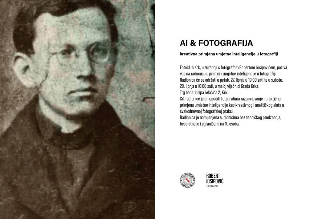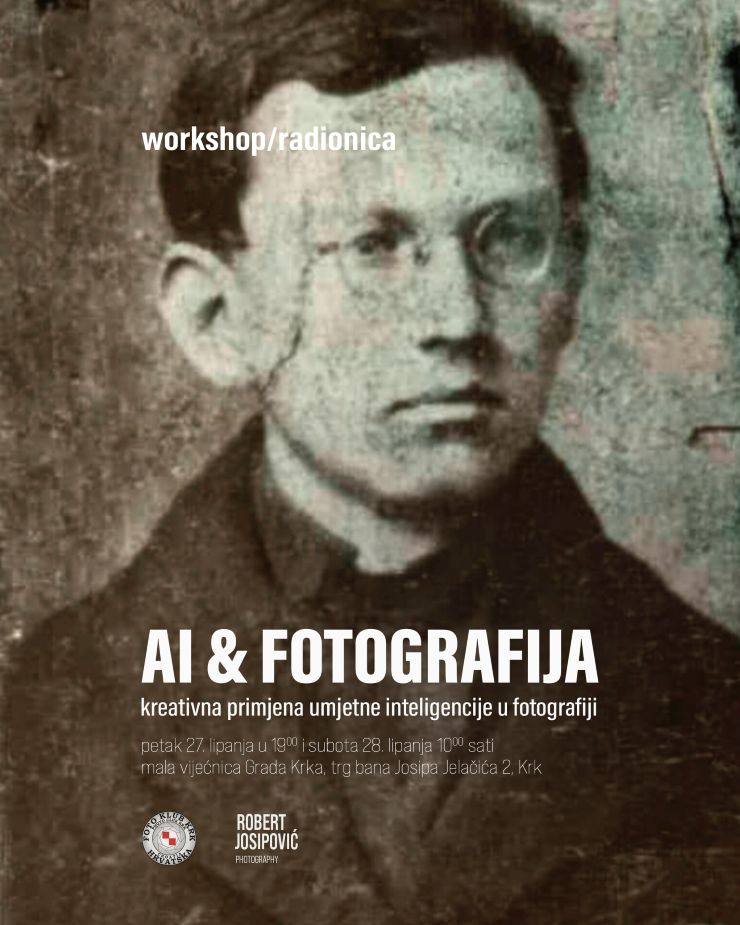 Fotoklub Krk, u suradnji s fotografom Robertom Josipovićem, poziva sve zainteresirane na radionicu o primjeni umjetne inteligencije u fotografiji, koja će se održati u petak, 27. lipnja u 19:00 sati te u subotu, 28. lipnja u 10:00 sati u maloj vijećnici Grada Krka (Trg bana Josipa Jelačića 2).