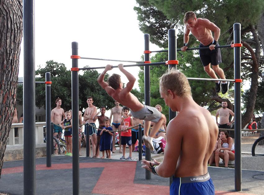 Vježbalište na otvorenom ili Centar aktivnosti Krk osmišljen je 2017. godine kao reakcija na objavljeni Javni poziv Ministarstva turizma za izgradnju javne turističke infrastrukture. Vježbalište je izgrađeno u dvije faze tijekom iste godine, kada su u sklopu jedne čestice uređene površine za vježbanje na otvorenom. Centar je osmišljen kao bazično fitness vježbalište na otvorenom koje sadrži elemente za razvoj spretnosti i poboljšanje psihofizičkog stanja tijela vježbača. Prilagođen je i osobama s posebnim potrebama, a od elemenata ondje se mogu pronaći Parkour park, street workout, zona stabilnosti, zona funkcionalnog fitnesa te prostori sportskog kluba i recepcije. Slobodno vježbanje na otvorenom izvrsno je prihvaćeno u gradu Krku, kako među turistima, tako i među domaćim stanovništvom koje se svake godine zabavlja na treninzima joge, pilatesa, aerobika, crossfita, funkcionalnog fitnesa i slično.