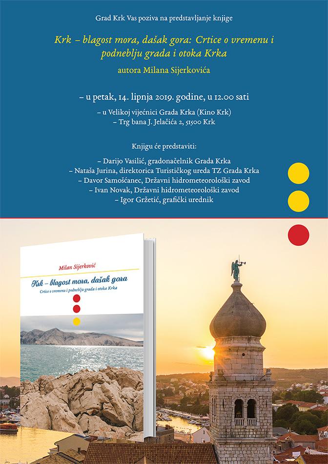 U završnici proslave Dana Grada Krka, 14. lipnja 2019. godine, pred punim auditorijem Velike gradske vijećnice, predstavljena je posljednja knjiga svima dobro znanog meteorologa Milana Sijerkovića, pod nazivom Krk - blagost mora, dašak gora: Crtice o vremenu i podneblju grada i otoka Krka.