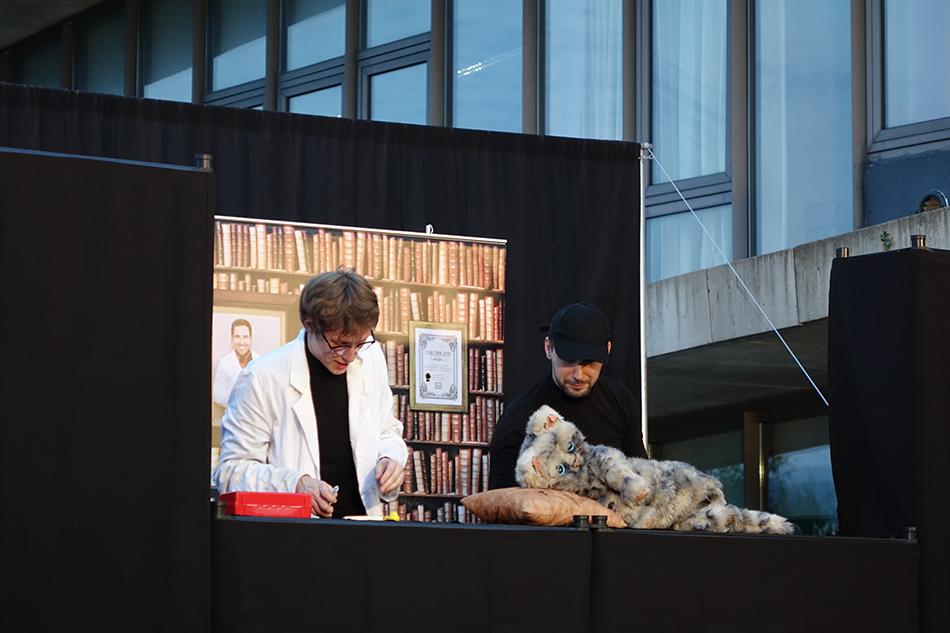 Prvi ovogodišnji program namijenjen najmlađim posjetiteljima Ljetnih priredbi, predstava Doktor od životinjica, kreirana u produkciji Dječje scene Teatra Gavran, na Sceni Zidine odigrana je 03. srpnja, i to pred solidno popunjenim auditorijem.