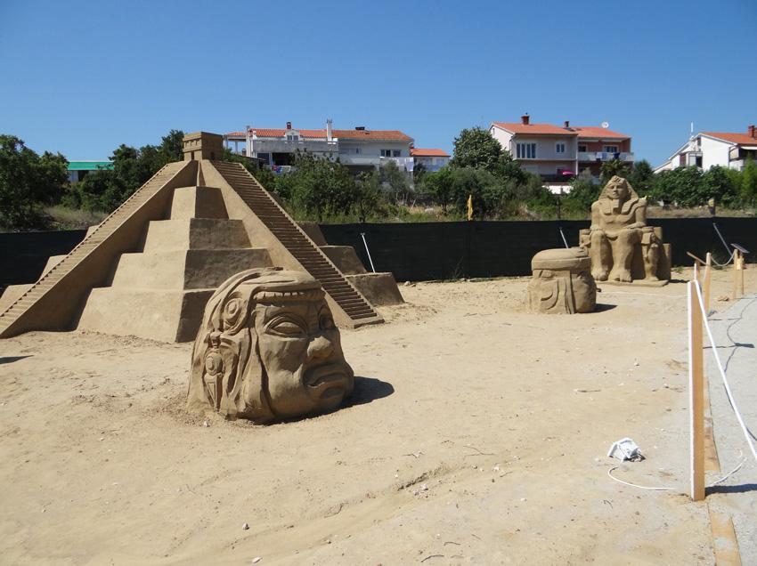 Početkom lipnja ispred kompleksa Sportsko rekreativnog centra Josip Uravić Pepi u gradu Krku otočani i njihovi gosti dobili su priliku uživati u novoj originalnoj turističkoj atrakciji - parku monumentalnih pješčanih skulptura - inspiranih, kako poviješću drevnih civilizacija, tako i remek djelima svjetske kiparske baštine.