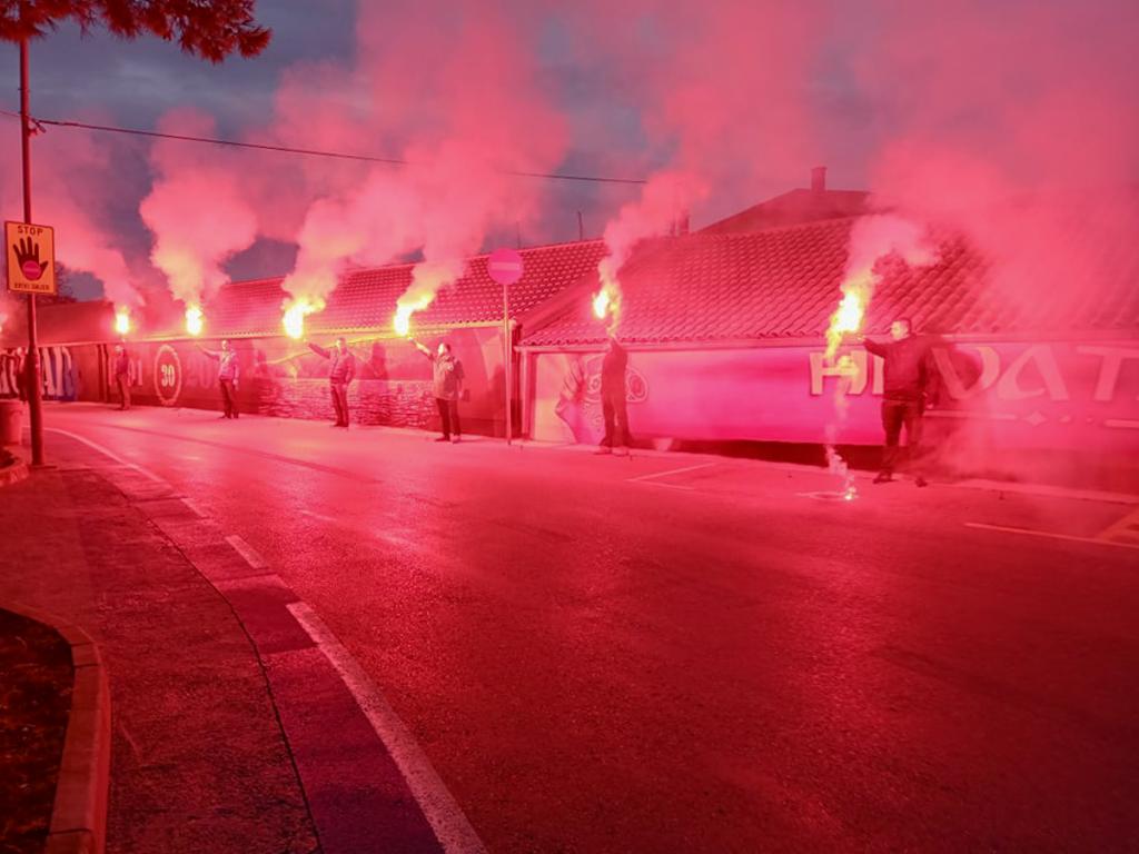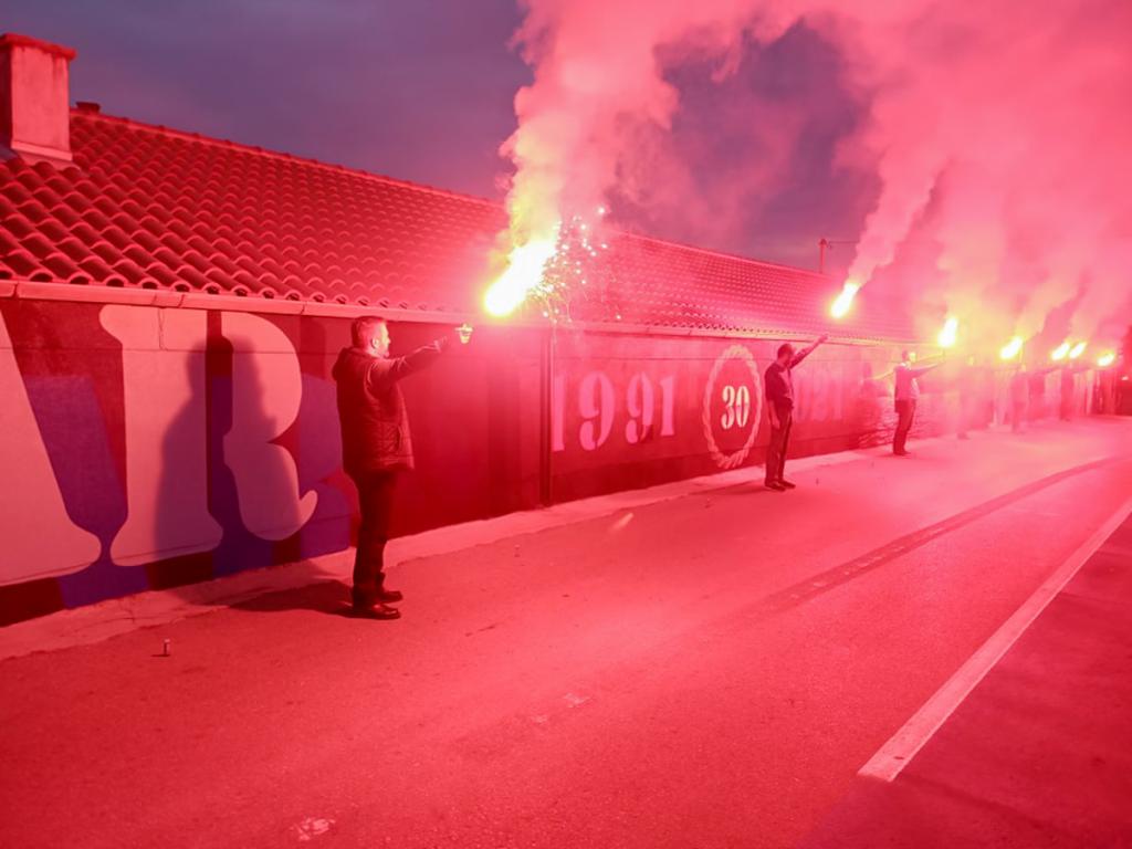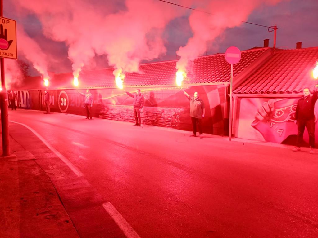 Uz simboličnu bakljadu podno prikaza tradicionalne navijačke bakljade na Krčkom mostu, i članovi Udruge Plavo bijeli otok odali su počast stradalima.