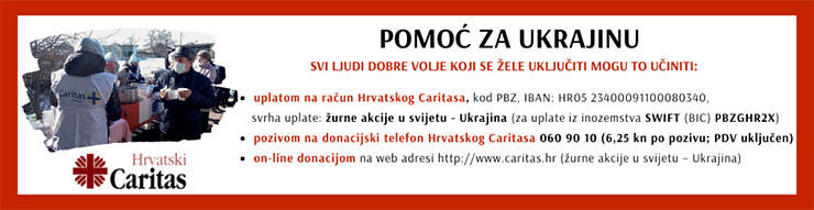 - putem online uplata na: www.caritas.hr (žurne akcije u svijetu - Ukrajina);