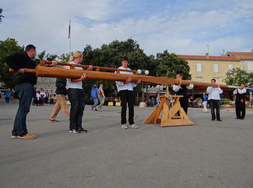 Program ovogodišnje Štorije o galiji Cristo Ressussitato započeo je, 04. listopada 2013. godine izlaganjem replike vesla krčke galije trireme u naravnoj veličini (dugačkog 12,5 m i teškog 250 kg) na prostoru gradske rive. Veslo koje je u začecima ove manifestacije izradio krčki brodomaketar Željko Skomeršić položeno je na kavalete te se tako postavljeno (u narednih nekoliko dana) može pokretati na isti način kao što se to nekada činilo na galijama. Prijenos vesla i simulaciju zaveslaja, što su privukli velik broj znatiželjnika, pratio je nastup raspoloženih folkloraša - plesača i sopelaša - iz Kulturnog društva Kornić.