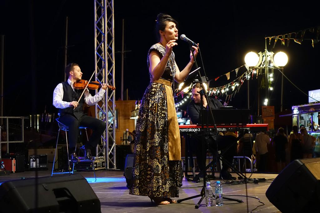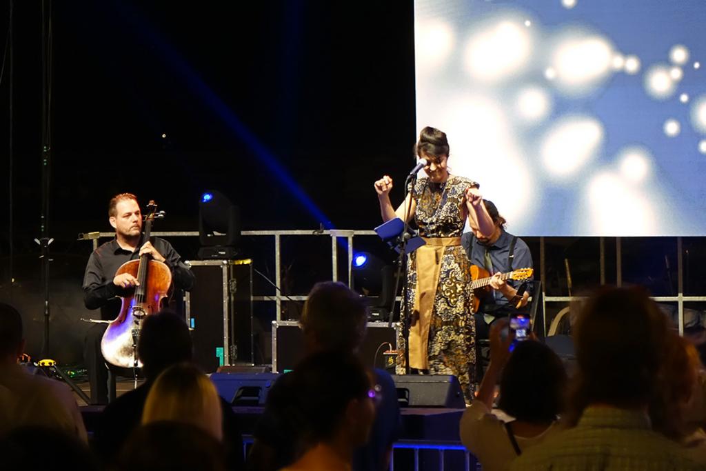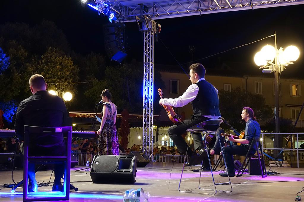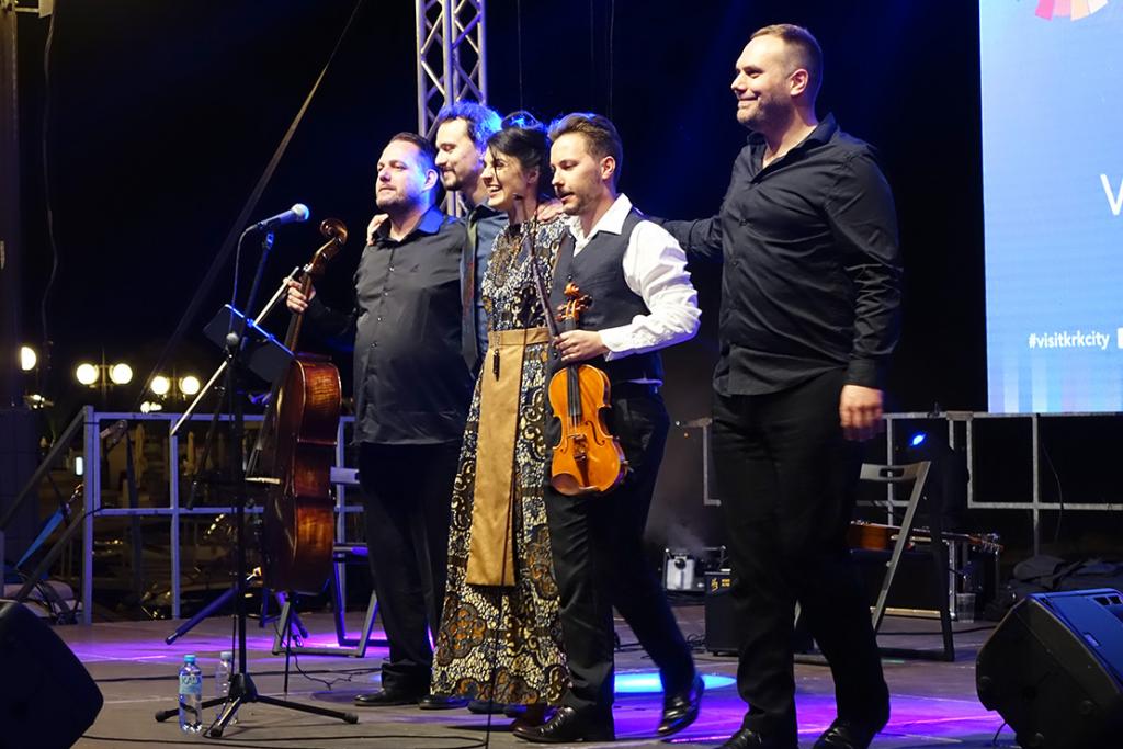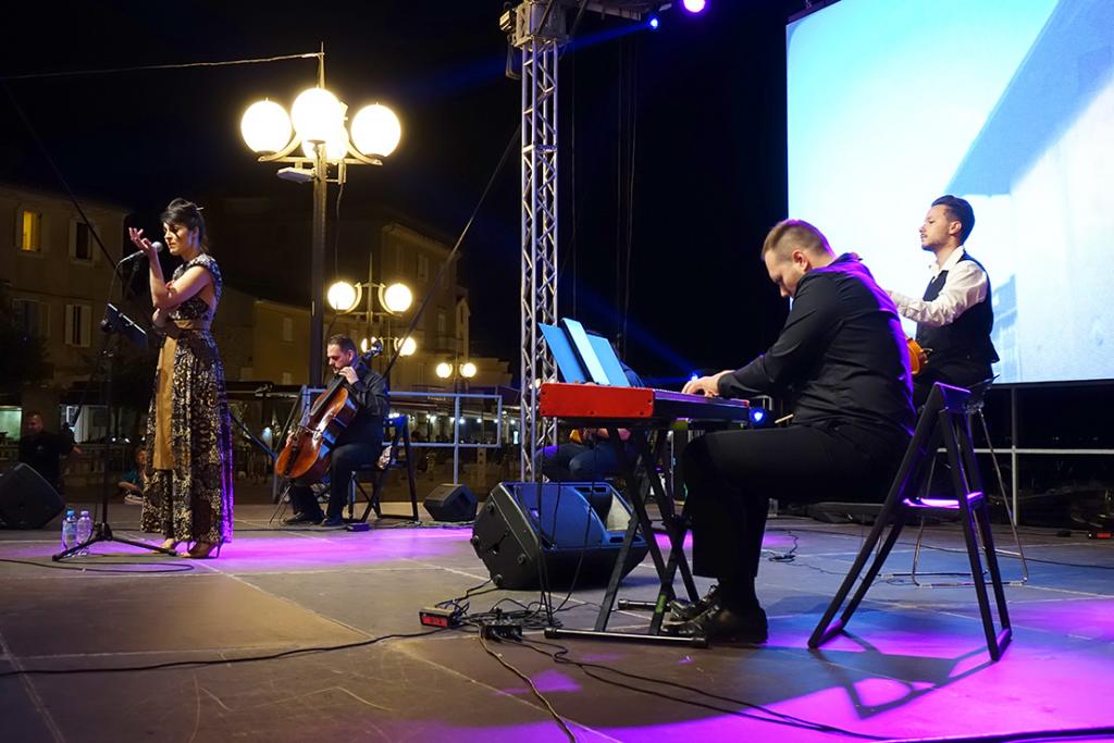 Nakon spektakularnog nastupa Simfonijskog orkestra Hrvatske radiotelevizije, također, kao dio programa Ljetnih priredbi i Krk Music Festa, 19. lipnja, na istoj je sceni u samome gradskom središtu uslijedio koncert nazvan Francuska glazbena priča - Voilà à la Travershe kojeg je, interpretirajući najpoznatije francuske šansone (La chanson des vieux amants, Jardin d'Hiver, Les feuilles mortes, La Bohème, Parole, parole, Je cherche un homme, C'est si bon...), iznijela glumica i pjevačica Nera Stipičević praćena ansamblom kojeg čine pijanist Tomislav Parmać, čelist Neven Šverko, gitarist Mirko Prišlin i violinist Leopold Stašić. Na našim je prostorima oduvijek poznat snažan utjecaj inozemne glazbene scene, međutim niti jedna kultura ne pjeva glazbene priče na svome jeziku globalno dojmljivije od one francuske. Razlog tome su melodioznost francuskog jezika i nužna sugestivna i emotivna interpretacija izvođača. Kao dvostruka stipendistica pariške institucije Recollets International, članica Zagrebačkog gradskog kazališta Komedija Nera Stipičević, za svojih je rezidencijalnih boravaka u Parizu (tijekom 2013. i 2018. godine) razvila posebnu ljubav prema francuskom jeziku i glazbi. Intimističke izvedbe ove svestrane umjetnice i pratećih glazbenika, još su jednom podsjetile na važnost umjetnosti i njezino ljekovito, ali i katarzično djelovanje, kako za one koji ju tek konzumiraju, tako i za one koji ju stvaraju.