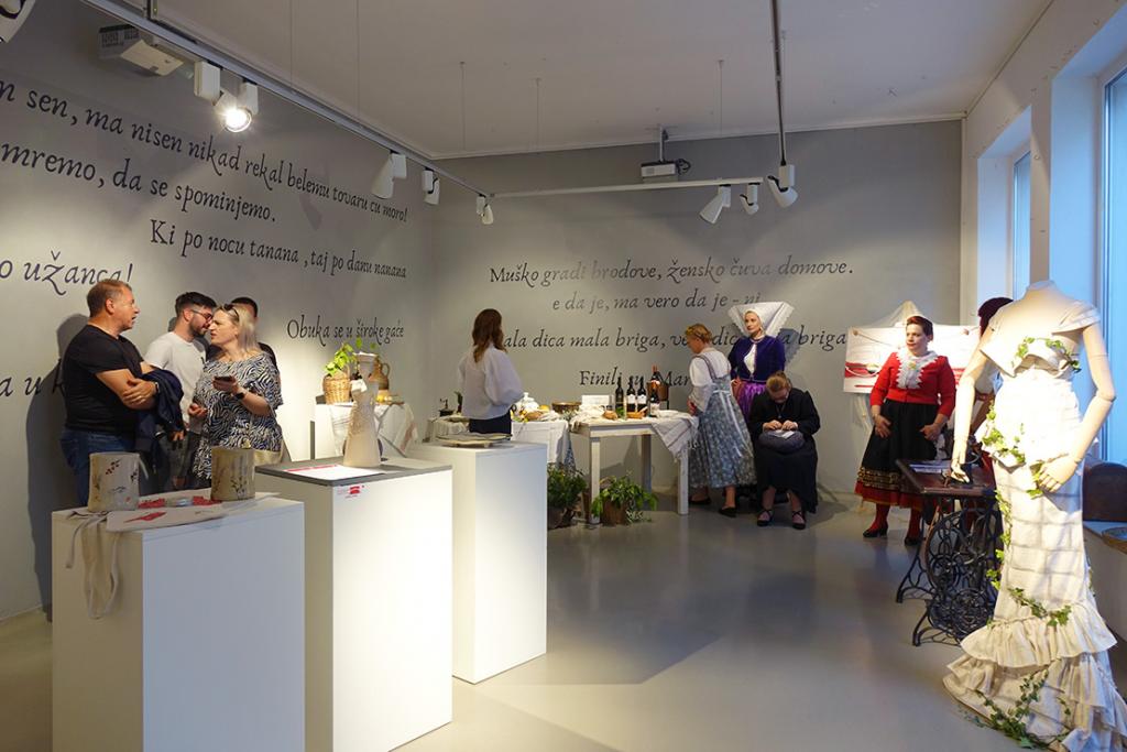 Po završetku konferencije u Galeriji Decumanus otvorena je izložba Ženski glasovi i priče s otoka koja predstavlja svojevrsnu proslavu ženskog doprinosa očuvanju kulturne, povijesne, folklorne i prirodne baštine naših otoka. Kroz različite priče, fotografije, publikacije, umjetničke i obrtničke radove, gastronomske momente i ostale artefakte, postav je donio priču o snazi, ljubavi i predanosti žena koje su pridonijele i još uvijek pridonose kreiranju identiteta naših otoka. Na ovoj izložbi svoje su radove, proizvode i usluge predstavile sljedeće članice Udruge Žene za otok: Irena Šimić (Plawa), Milena Deburnner (Lola dream), Marina Brozić (Cake time), Ana Kominka (Sena ustvarja), Jasminka Gršković (Blue Sheep), Egle Katunar (Kuća vina Ivan Katunar), Gorana Nedić (Miau Couture), Martina Frka Milotić (Bodulija.net), Iva Jurjević Prodan (Bodulka dizajn) i Renata Vojnić (Re-art). Izložbu su, pred u punim auditorijem, zajednički predstavile Jovana Čutul i Dajana Grgantov, predsjednica i članica Udruge Žene za otok, a riječi podrške ovom konferencijsko-izložbenom događanju na kraju je uputio i Darijo Vasilić, krčki gradonačelnik.