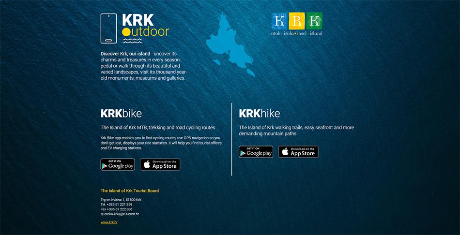 KRKbike i KRKhike, čiju je izradu inicirala Turistička zajednica otoka Krka, zasad su dostupne kao aplikacije prilagođene Android operativnom sustavu i iPhone uređajima, a kao takve mogu se preuzeti u Google Marketu, odnosno AppStoreu, ali i s Internet stranica Turističe zajednice otoka Krka, odnosno portala KRKoutdoor. Aplikacije su zasad dostupne na engleskom jeziku, a osim karte šetnica i pješačkih staza, šetačima i biciklistima pozornost skreću i na mnoge uz rute dostupne kulturne znamenitosti.