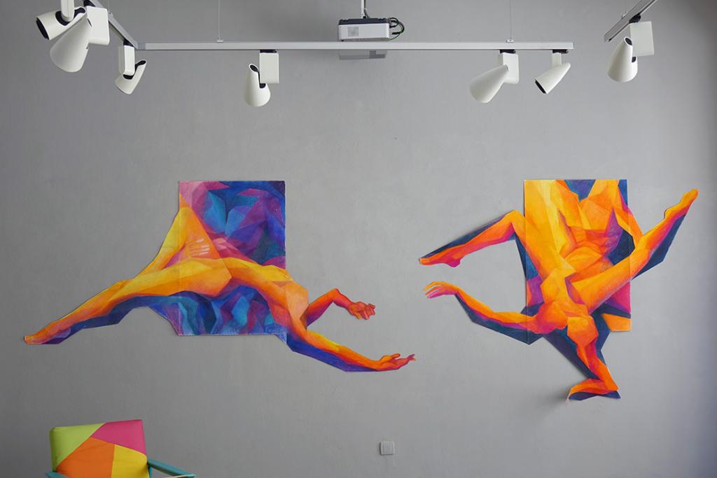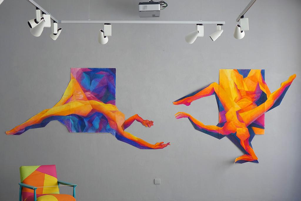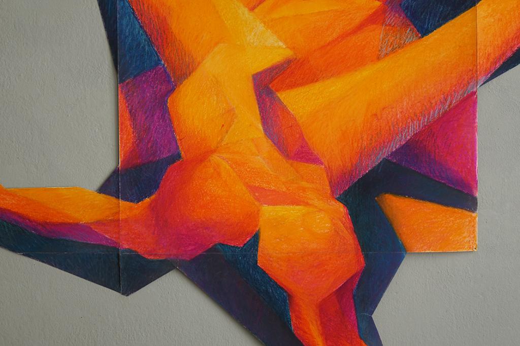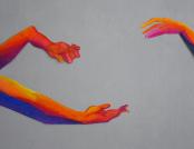 – Diana Sokolić poziva nas na putovanje kroz likovni opus koji obuhvaća razdoblje od dvadeset godina. Potreba za revalorizacijom ovih radova je opravdana, jer je riječ o izuzetno vrijednim, modernim i intrigantnim djelima koja su često bila nagrađivana, ali rijetko izlagana. Sekvence nagih tijela žene i muškarca obrađuje u apstraktno-kubističkoj maniri. Kubizam koristi simultane prikaze različitih vizura objekta ili subjekta kako bi stvorio višedimenzionalnu percepciju prostora, slično Dianinim kreativnim rješenjima. Radove možemo podijeliti u tri faze, odnosno tri stvaralačke i vremenski zasebno obrađene cjeline. U prvoj, najranijoj fazi u skupini radova pod nazivom Oslobađanje (1983. - 1986.) prikazuju se tijela zatvorena rešetkom, koja se pokušavaju osloboditi, također u toj fazi nalazimo radove iz ciklusa Privatna istraga I i II (1988. - 1990.). Motiv je izrađen ugljenom na papiru i još uvijek vidimo realistično obrađene dijelove tijela. Ovi crteži nose snažnu simboliku, komuniciraju osjećaj zarobljenosti i ograničenja unutar ljudskog tijela, uma i društva. Dominira osjećaj frustracije i potreba za promjenom. To su prva umjetnička djela koja radi nakon završene Akademije likovnih umjetnosti i obilježena su žudnjom za istraživanjem. Ciklus Srebrna nit (1991. - 1993.) nastavlja rad ugljenom, no likovi su više apstrahirani, dobivaju krila, postaju duhovniji. U drugoj fazi uvodi se boja; koristeći tehniku suhog pastela Diana čvrstim i odlučnim potezima kreira plohe intenzivne fluorescentne palete od hladne plave, ljubičaste, do tople ružičaste, narančaste i žute. Ova paleta izaziva intenzivne emotivne reakcije i euforična stanja koja nas privlače prema prikazanim scenama. Apstraktni aktovi kao u borbi i/ili strasti, potpuno su obuzeti svojom unutrašnjom dinamikom. Obezglavljene figure prenose sirovu tjelesnost, ali i duhovnost. Dijagonalne kompozicije naglašavaju napetost. Ovdje možemo uključiti cikluse radova od 1994. - 2000. godine, Aurora Borealis i Zest. U trećoj fazi aktovi Zest prelaze doslovno u naš prostor, prvo na zidu, izlazeći iz okvira slike, zatim postajući trodimenzionalne instalacije u galeriji i nastavljaju se u djela pod nazivom Syzygia (2001. - 2002.). Osnovna asocijacija, koja se proteže od prve do zadnje faze, može se opisati kao proboj, proboj kroz sve likovne i društvene konvencije u potrazi za autentičnim likovnim jezikom kojim će se predstaviti neposredno iskustvo. Korištenje oštrih geometrijskih formi da bi se oblikovali dijelovi tijela, ponegdje apstrahiranje do neprepoznatljivosti naglašavaju dinamiku zbivanja. Simultani prikazi događanja uvode u četvrtu dimenziju - vrijeme; no ovo vrijeme nije linearno, već je fragmentirano i relativno. Bez obzira na fragmentaciju motiva zadržava se fluidnost radnje, a veličina radova očarava svojom snažnom prisutnošću. Neonske boje koje pršte poput aurore borealis nose u sebi čudesnost i ljepotu u kojoj ostajemo fascinirani i zatečeni. Promotrimo li upotrebu duginih boja kroz simboličko značenje vidimo njihovu važnost i prisutnost u mnogim kulturama i povijesnim razdobljima. Duga je simbol raznolikosti i nadanja u bolju budućnost. U kršćanstvu se spominje u Starom zavjetu; nakon potopa duga se pojavljuje na nebu i simbolizira Božje obećanje da više nikad neće uništiti ljude. U suvremenom kontekstu, poput mirovnog pokreta ili pokreta za ljudska prava, duginim bojama se simbolizira mir, jednakost, inkluzivnost i solidarnost. Dianina umjetnost nije samo estetska, već je i duboko filozofska; nameću se pitanja o povezanosti, ljubavi, intimnosti, i dualnosti. Upućuje nas na promišljanja o prirodi ljudske egzistencije. Podsjeća nas na to da je jednost obmana, da sve postoji u dualnosti, nerazdvojno, neminovno i nepobitno, pa tako i mi, zaključuje Ritoša.