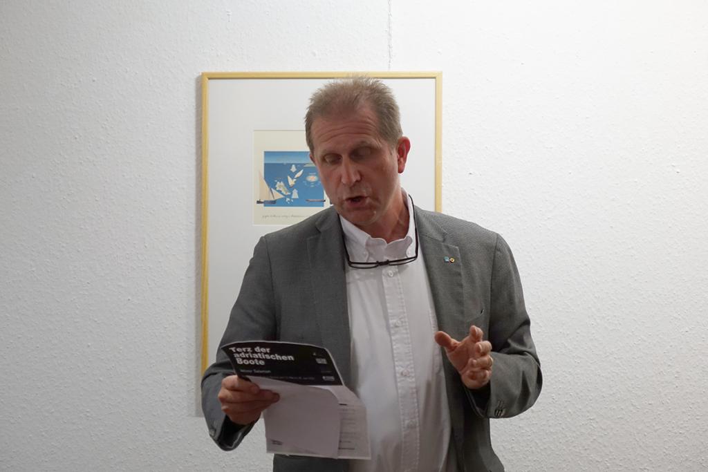 – Stara latinska poslovica kaže: Živjeti se ne mora, ploviti se mora! (Navigare necesse est, vivere non est necesse!), istakla je Parentić. Slobodno bih kazala, i ploviti i putovati se mora! Zato smo danas ovdje s crtežima brodova karakterističnih za istočnojadransku obalu. Brodovi su kao ljudi, oni se krste, imaju svoje ime, svoju dušu, životni vijek, a nakon njih ostaju uspomene. To je istina, a ne mit. Ovu izložbu čine 64 minuciozna crteža tradicijskih, do danas gotovo nestalih, jadranskih brodova na jedra i vesla. Oni predstavljaju krunu cjeloživotnog istraživanja i rada prof. dr. Velimira Salamona koji je posljednjih nekoliko godina stanovnik njemačkog grada Kiela, dodaje Parentić. Ovdje, večeras, svjedočimo mediteranskom ishodištu Hrvatske, a ovu izložbu sa sigurnošću možemo smatrati podsjetnikom usmjerenim prema očuvanju naše kulturne i pomorske baštine. Iskoristila bih, na kraju, priliku da se najsrdačnije zahvalim našim vrijednim domaćinima, gradonačelniku Rockenhausena Michaelu Vettermannu, zatim Anni Senger i Beate Klein-Liebheit iz Ureda za kulturu Grada Rockenhausena te Jasni Gilbert čijom su predanošću prožeti svi naši zajednički projekti, zaključila je Parentić.