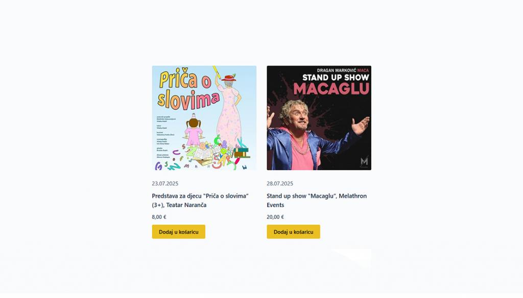 Centar za kulturu Grada Krka obavještava kako se ulaznice za gotovo sva naplatna događanja organizirana u sklopu ovogodišnjih 69. Ljetnih priredbi, od utorka 15. srpnja, mogu kupiti putem nove internetske platforme za prodaju karata kojoj se pristupa putem sljedeće poveznice: www.kulturakrk.net/prodaja.