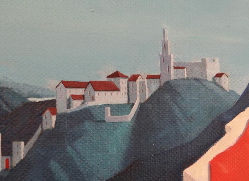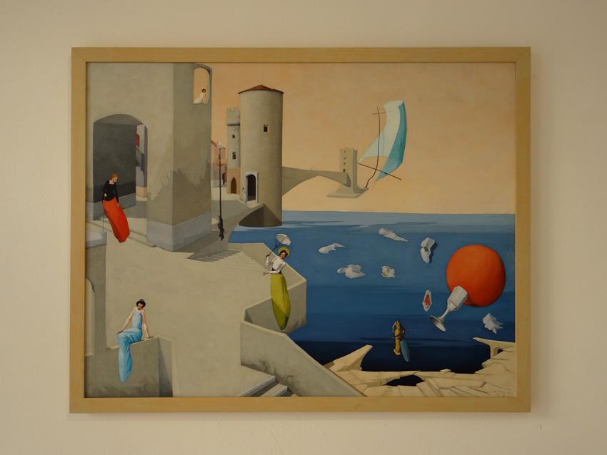 Moje slikarstvo, od kojeg se segmet ovih dana može razgledati u krčkoj galeriji, najbliže je definiciji fantastičnog realizma, ističe Đerek, zato što se slikajući autor može igrati svim zakonima prirode i fizike te putem te igre dobivati na ritmu i kompiziciji, što je očito i na mojim radovima obzirom da krajnje proizvoljno prostor ispunjavam kulama i segmetima pejzaža. Čvrsto vjerujući u zapadnu misao, zaključuje Đerek, svoje slikarstvo vezujem uz stare majstore, počevši od romanike i gotike, pa nadalje, što znači da se figuracija (uronjena u fantastične ambijente), kao takva, nametnula sama po sebi.