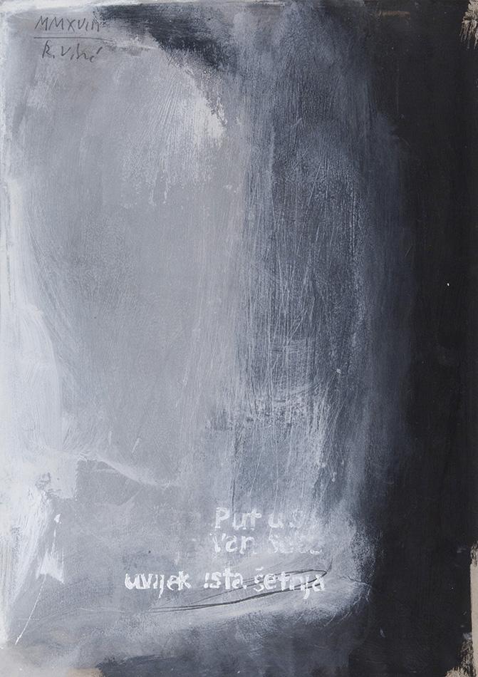 Prema riječima kustosice, ujedno i autorice predgovora kataloga Višnje Slavice Gabout, U kontrapunktu možemo smatrati problemsko-tematskim interdisciplinarnim, intermedijskim projektom, koncipiranim za Galeriju Decumanus, u kojem se, na zadanu temu, okupljaju i zajednički izlažu istaknuti suvremeni umjetnici. Točnije, u kojem se, naizgled sučeljavaju, ali ustvari združuju, a kroz zadanu tematsku matricu i propituju efekti tog sučeljavanja i združivanja; odnosno, međusobnog djelovanja različitih pristupa, izričaja, medija i disciplina. Svako izdanje ovog izložbenog projekta povezuje dvoje ili više autora, dvije ili više samostalne autorske dionice, i to kroz intermedijsku i interdisciplinarnu sinergiju problematizirajući sličnosti u različitosti. Autori na prvi pogled međusobno nekompatibilnih pristupa i poetika, združeni u izložbenu cjelinu projekta, stupaju na kraju u skladne vizualne dijaloge, u novom okruženju ulazeći u nove i zanimljive odnose. Projektom U kontrapunktu, nastavlja Gabout, zamišljeno je povezivati izrazite autorske osobnosti u naizgled neočekivane cjeline i intrigantna zajedništva, ujedinjena medijem ili tematskim konceptom, te ih tako uvesti u suvremenu igru izazovnih vizualnih interakcija. Unatoč različitostima u individualnosti, autoritarnosti osobnih autorskih identiteta i prividnim suprotnostima, namjera je uvesti vizualnu komunikaciju, suglasje i medijski razgovor. Isto tako, namjera je da se, unatoč interferencijama i razlikama, u konačnici pokažu sličnosti i doticanja, pa i preklapanja; onaj zajednički nazivnik, koji njihov susret pretvara u diskurzivni dijalog. Najnovije izdanje projekta U kontrapunktu: Trag, dodaje Gabout, koji okuplja radove akademske slikarice Roberte Vilić i fotografkinje Renate Škrinar, temelji se na diskurzivnom pristupu, a propituje vizualno-semantičko bogatstvo koje proizlazi iz specifičnog sinergijskog odnosa slikarskog i fotografskog medija, u kojem su slikarstvo i fotografija, premda naizgled u stalnom kontrapunktu, u uzajamno inspirirajućem odnosu, u kojem se ne sukobljavaju, već se na kreativan način nadopunjuju, stapajući se u harmoniju doživljaja. Vizualna strategija zasnovana je tu na preklapanju viđenoga, fotografiranoga i slikarskim medijem transformiranoga; na stvaralačkom postupku akcije i reakcije; na stalnim medijsko - semantičkim izazovima; na interaktivnoj koegzistenciji; i na profinjenoj igri međusobnih autorskih parafraza. Obje autorice polaze od konkretnoga i viđenoga, a onda pretvaraju stvarnost u autorski modificiranu vizualnu informaciju, koju transkribiraju iz jednog medijskog sustava u drugi, mijenjajući i spajajući svjetove, propitujući prostor, vrijeme i zbilju, izazivajući osjetila - i uvijek tražeći ne samo emotivnu, nego i mentalnu aktivnost. U njihovim radovima, tumači Gabout, zbog višestrukih transkripcija, dvojak je doživljaj prostora i vremena. S jedne strane, osjeća se prolaznost, jer se iščitavaju tragovi protjecanja vremena i znakovi naslaganih sedimenata bivanja, otisci mijena i transgresija. S druge, prisutan je osjećaj zaustavljenosti, bezvremenosti i utišane poetičnosti; i neka posebna atmosfera kontemplacije i suzdržane emotivnosti. Premda je realnost tu polazište, stalni prijelaz iz jednog medija u drugi čini je neodredljivom i izmičućom, pa se pojavljuje u različitim vidovima: u apstraktnoj slici kao enformelovska vizualno-materijalna osjetilnost, u fotografiji kao neopipljiva opipljivost, a u slici inspiriranoj takvom fotografijom kao materičnost i stvarnost sama po sebi. Fotografija i slika tako, združene kao dvojstvo u komunikaciji, postaju prostori stalno promjenjivih tragova, stvarajući svojim interferencijama i interakcijama doživljaj obrnute ili druge stvarnosti, time iskoračujući iz svojih tradicionalnih, standardnih okvira i krećući se tragom suvremenosti, zaključuje naposljetku Gabout.
