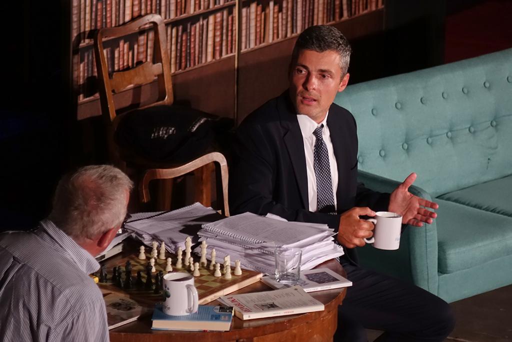 U ulozi starog političkog lisca našao se vrsni Vinko Kraljević, dok je mladu političku nadu utjelovio Zoran Pribičević. Njihovu vještu glumačku igru povela je redateljica Mladena Gavran, stvorivši napetu i oštru atmosferu između dvije političke generacije.