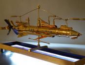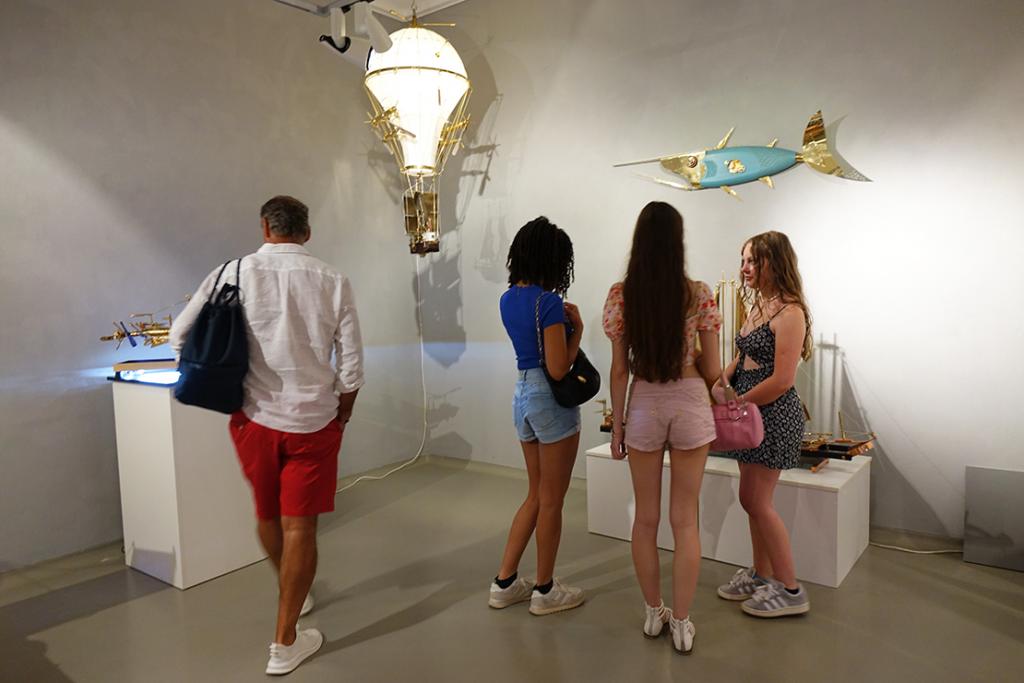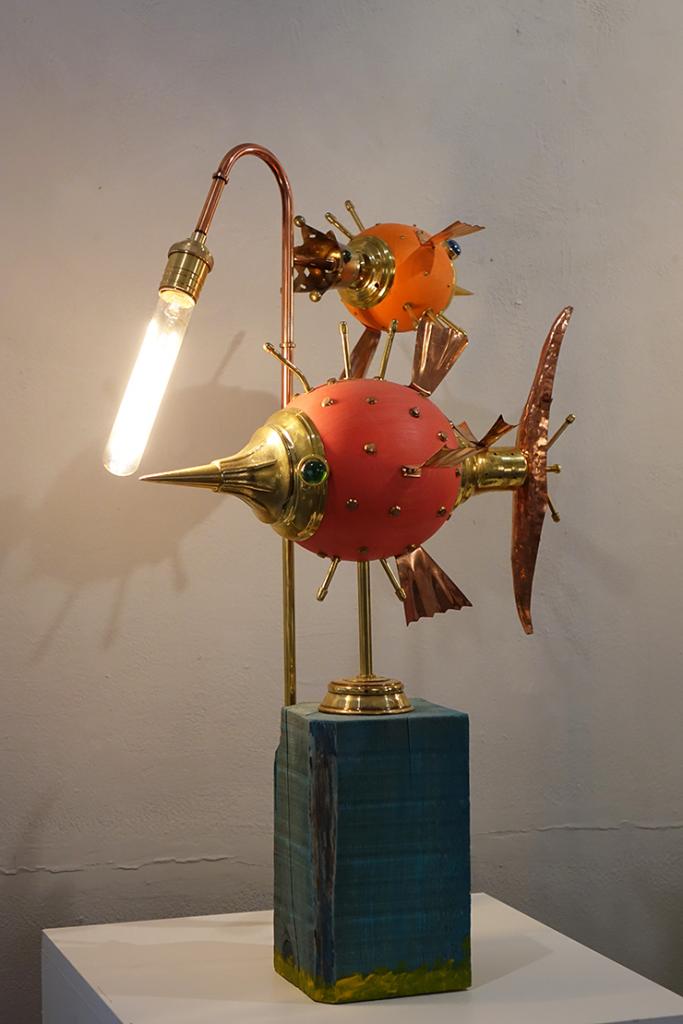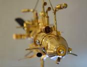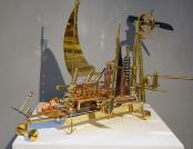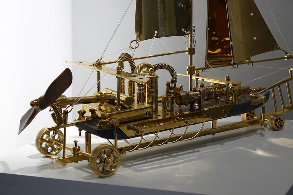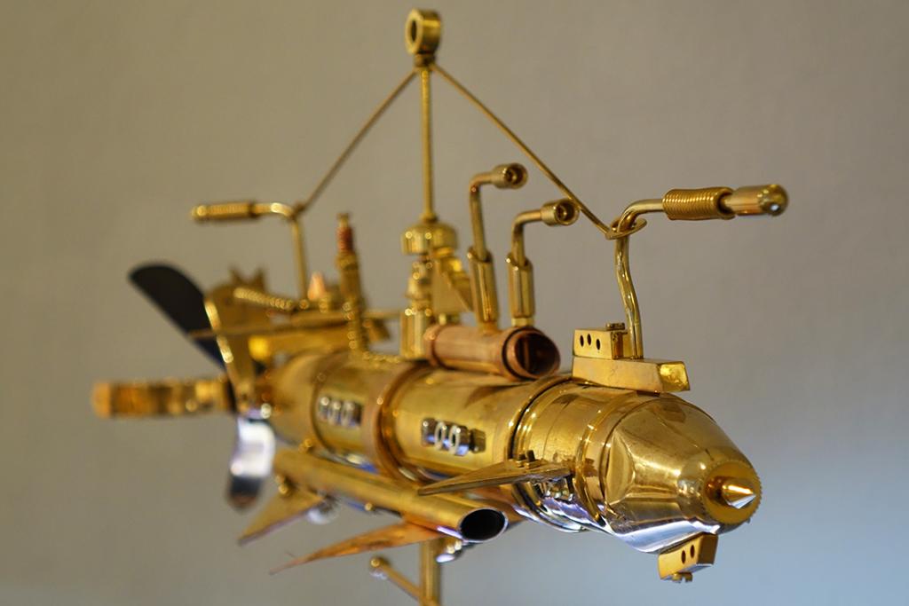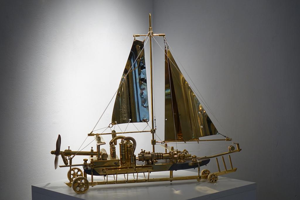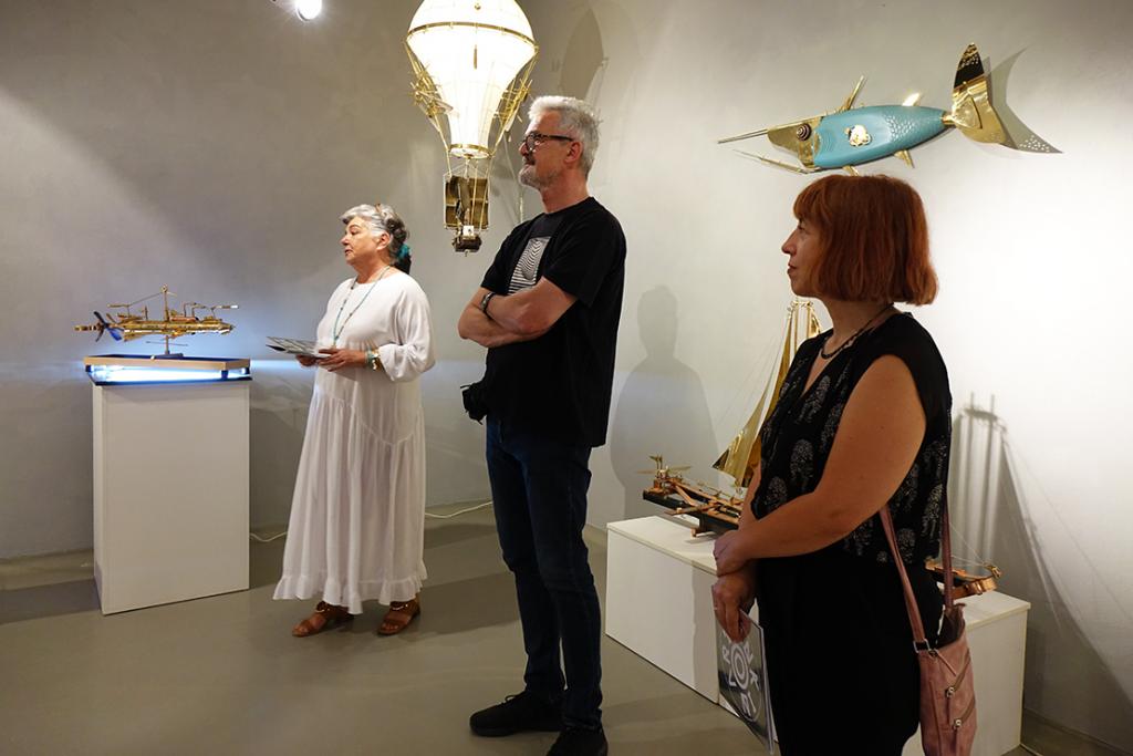 – Svake godine ovaj interdisciplinarni, multimedijalni projekt ugošćava niz istaknutih autora povezanih u jednu cjelinu, uvela je Ritoša. Ovogodišnja tema posvećena je suvremenoj znanstveno-fantastičnoj likovnosti, pri čemu istražujemo vizualnu potku Zoltana Horvata Cološa, Zdravka Milića i Vice Glibote. Žanr znanstvene fantastike neizostavan je dio njihovog šireg i višeslojnog likovnog, ali i društvenog diskursa. Zoltan Horvat-Cološ nudi nam optimizam retro-futurističkih objekata, Zdravko Milić svojim mjesečevim pejzažima kritički promišlja svakodnevnicu, dok se Vice Glibota predstavlja mračnim, monumentalnim cyberpunk konstrukcijama. Korijene znanstvene fantastike u likovnosti, u formi fantastičnog i snovitog, mogli bismo pronaći u raznim djelima. Posebice se ističe Hieronymus Bosch sa svojim čudnovatim bićima, nadnaravnim krajolicima te kombinacijama religijskih i fantazmagoričkih prikaza. Počeci se mogu vezati i uz romantizam i simbolizam, s umjetnicima kao što su Henry Fuseli, Odilon Redon i William Blake. Futurizam, u proslavi stroja i industrije, također doprinosi formiranju žanra, a isto tako i nadrealizam - prizovimo radove René Magritta, Max Ernsta ili Remedios Varo i Leonore Carrington. Poseban utjecaj ima književnost, pri čemu su djela Mary Shelley, Julesa Vernea i H. G. Wellsa nadahnula mnoge umjetnike. Razdoblje između 1930-ih i 1950-ih poznato je kao zlatno doba znanstvene fantastike, kada su stripovi, časopisi i filmski plakati predstavljali osnovno područje ZF likovnosti. U to vrijeme javljaju se umjetnici poput Chesleyja Bonestella ili Margaret Brundage ilustratorice kultnog časopisa Weird Tales. Uz napredak znanosti i tehnologije, u 21. stoljeću, ZF postaje sveprisutan žanr, a posebno se razvija žanr retro-fantastike, cyberpunka i postapokaliptične fikcije. Konkretno, u radu Zoltana Horvata Cološa prisutne su karakteristike steampunk estetike: naglašena mehanika, vidljivost svih dijelova mehanizma (cijevi, zupčanici, žice), miješanje materijala, i povijesnih razdoblja, međutim autor ipak ima znatan pomak od tog žanra. Naime, klasični steampunk modeli spajaju već postojeće elemente, a on mnoge dijelove kompletno sam izrađuje. U tome se ističe kao izvrstan zanatlija koji kombinira minimalno sedam zanata. Vidimo stručnost u struganju, varenju, poliranju, lakiranju, limariji, origamiju i drugim zanatima. Materijali koje najčešće koristi su drvo javora, staklo, bronca i mesing. Izbor tih materijala upućuje na to da autor teži vrsnoći, da mu je bitna dugovječnosti i kvaliteta rada, koju, možemo slobodno reći, majstorski dostiže. Precizna elegancija izrade stapa se s dojmom raskoši i ekskluzivnosti. Drvo, svojom prirodnom teksturom i toplinom, pruža kontrast hladnim metalnim dijelovima, čime skulpture dobivaju dozu organskog. Bogatim detaljima, sjajem i oblikom ti nas radovi privlače da im priđemo bliže i pokušamo odgonetnuti ne samo njihovo značenje, već i prijašnju funkciju pojedinih dijelova. Primjećujemo da se neki sastoje od komada muzičkih instrumenata, uočavamo trubu, violinu, klarinet i saksofon. Ostarjeli ili odbačeni muzički instrumenti dobivaju novi život, novi smisao i novu svrhu. Uzbuđenje koje nas obuzima dok ih gledamo usporedivo je s uzbuđenjem djeteta koje otkriva novu igračku. Nadrealistički prizori koje pružaju ovi vješti sklopovi oduševljavaju maštovitošću te minucioznom i stručnom obradom, ustvrdila je Ritoša.