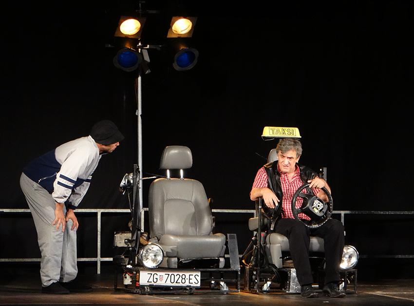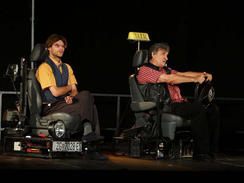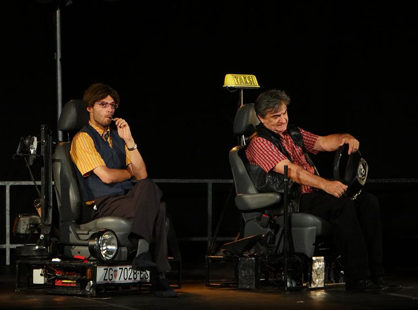 Predstava je to kojoj na zanimljiv, exitovcima svojstven način polazi za rukom otkriti što se događa taksistu na ulicama Zagreba dok se u njegovom taksiju vozi mnoštvo različitih karaktera, od konceptualnog umjetnika, preko tajanstvene dame koja to nije, novopečenog japija i bivšeg pankera, pa sve do neiskusnog svećenika, pasioniranog demonstranta, ali i starog, usamljenog profesora marksizma, u čijim se ispovijestima zrcale svi problemi i frustracije vremena u kojem živimo. Taksista i putnike u ovoj su gotovo dvosatnoj drami prožetoj britkim humorom zaigrali izvrsni Zijad Gračić i Robert Budak, dok je režija povjerena veteranu Matku Raguži.