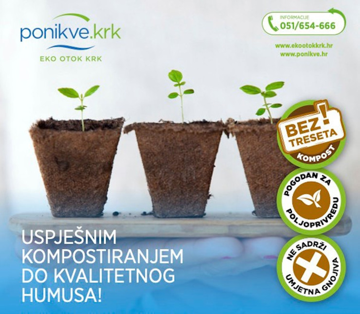 I ove godine Komunalno društvo Ponikve eko otok Krk nastavlja s akcijom besplatne podjele komposta otočnim domaćinstvima. Svi zainteresirani svoju besplatnu vreću (od 50 litara) imaju prilike preuzeti uz predočenje kupona koji je dostavljen uz redovne račune za komunalne usluge.