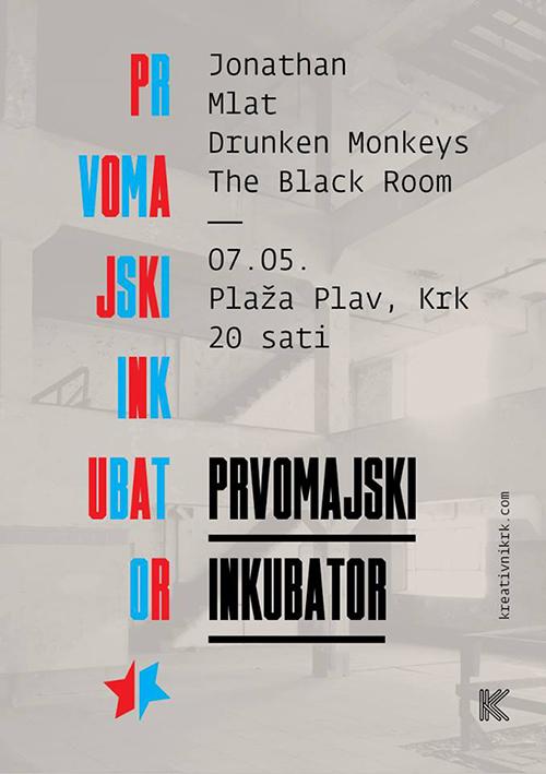 Sadržajima zaista bogata proslava Međunarodnog praznika rada tako se otvara 29. travnja, Warm up partyjem, tijekom kojeg će sve okupljene na plaži Plav dobro rasplesati Silk Milk, DJ Smeđi Šećer te neizostavni krčki rockeri Buco i Kalašnjikovi. Program se svojim aktivističkim dijelom nastavlja 30. travnja, i to, u Velikoj gradskoj vijećnici, tribinom na temu Propast industrije. Nadalje, 01. svibnja, na Gradskoj rivi (Ribarskom mulu) sprema se Prvomajski šušur, cjelodnevna ribarska fešta uz prigodnu glazbenu kulisu i slane delicije. U krčkoj Galeriji Decumanus, 06. svibnja, tematom koji se nastavlja na prethodno spomenutu raspravu, slijedi otvorenje skupne, žirirane izložbe, međunarodnog predznaka, koja će iz perspektive vizualnih umjetnika, aktualizirati probleme vezane uz tržište rada, proizvodni sektor i gospodarstvo, uopće. Naime, gotovo svakodnevno, svjedoci smo zatvaranja nekada jakih i uhodanih proizvodnih pogona koji su tvorili okosnicu ekonomskog razvoja, i kao takvi postajali svojevrsni simboli gradova i regija u kojima se nalaze. Donedavno živo arhitektonsko tijelo, gubljenjem svoje uloge, odjednom je pretvoreno u napušten i prazan kostur. U novije vrijeme nailazimo na trend bilježenja upravo takvih tzv. urbanih ruševina, koji fokus postavlja na fotografiranje propadanja napuštenih zgrada, hotela, tvornica ili strojeva lociranih u gradskim sredinama. Ova vrsta fotografije tako estetizira napuštanje i propadanje građevina, arhitektonskih kompleksa i dijelova grada te potiče raspravu o važnosti umjetnosti u revitalizacijskim i restauracijskim projektima unutar (post)industrijskih zona. A da je tema i više nego pogođena svjedoči zaista zavidan interes autora koji su na natječaj aplicirali s više od tisuću fotografija, s time da će se na izložbi, otvorenoj do 19. svibnja, predstaviti njih šezdesetak. Po prvi put, festivalski program dopunjen je produkcijskom radionicom kreativnog videa, koja će, između 06. i 09. svibnja, u suradnji s kolektivom iz riječke Udruge Filmaktiv, biti održana u Maloj gradskoj vijećnici. U završnici Prvomajskog inkubatora, 07. svibnja, Krčanima će se iznova na plaži Plav, predstaviti Drunken Monkeys, The Black Room te headlineri - pop-rock kreativci Mlat i Jonathan. Sve ostale informacije potražite na stranici
