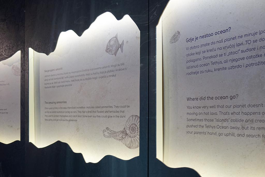 Popnite li se na gotovo bilo koji od planinskih lanaca koji se protežu od Učke sve do Himalaje, hodat ćete po izvrnutim i izboranim ostacima naslaga davno istaloženim na dnu Tethys oceana. Stotinama godina, stotine znanstvenika, proučavaju tragove u stijenama zbog kojih si danas tako živopisno možemo dočarati dug i buran razvoj koje je Jadransko more prošlo, u gotovo 200 milijuna godina svog postojanja… Izložba Od oceana do zaljeva prikazuje odabrane trenutke iz prošlosti nastanka i razvoja Jadranskog bazena, odnosno posjetitelje provodi kroz buran razvoj i raznolik život njegove gotovo 200 milijuna godina duge geološke prošlosti. Jadran, najljepši zaljev Mediterana, smješten između planinskih lanaca Alpi, Apenina i Dinarida, ostatak je velikog, bogato razvedenog oceana Tethys. O jednom od najvećih ikad postojećih oceana svjedoče fosilni ostaci i tragovi različitih organizama koji su živjeli u određenom geološkom vremenu. Namjera ove izložbe stoga je educirati sve njezine posjetitelje o posebnostima Jadranskog mora i životu u njemu, njegovoj prošlosti i sadašnjosti te potaknuti na razmišljanje o njegovoj i našoj budućnosti.