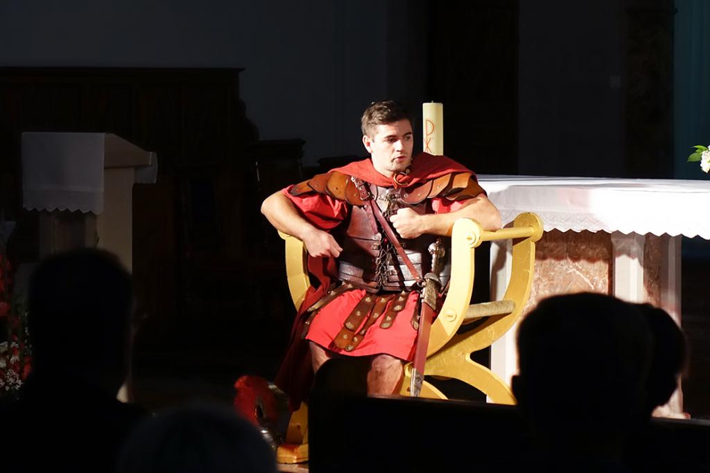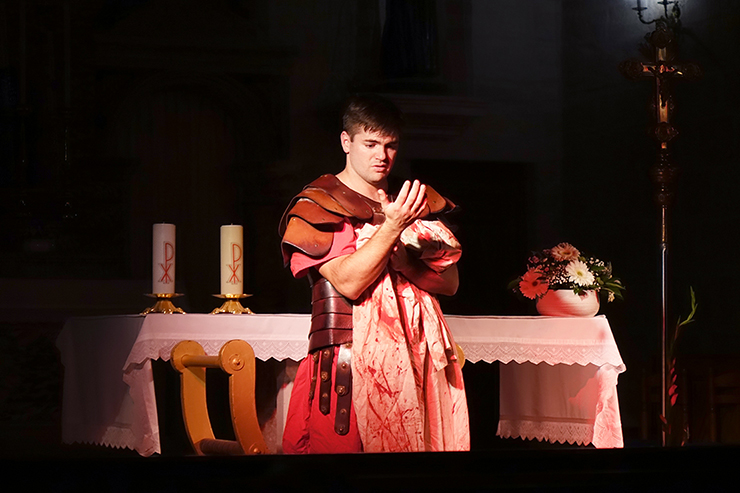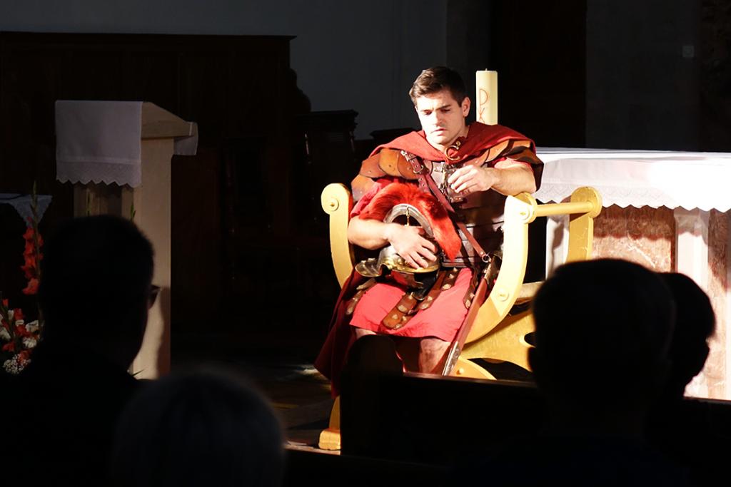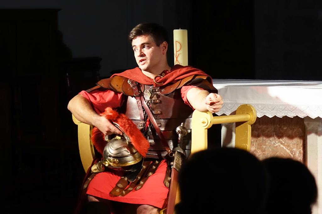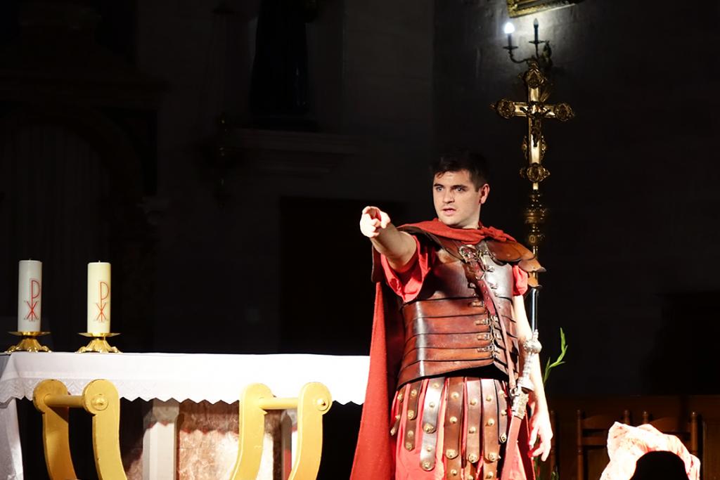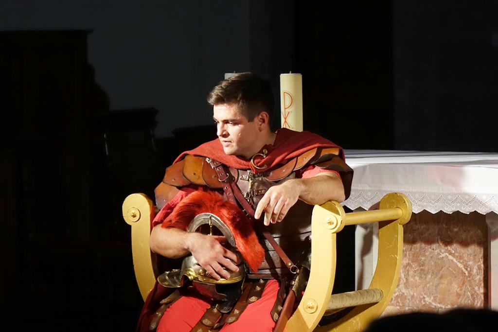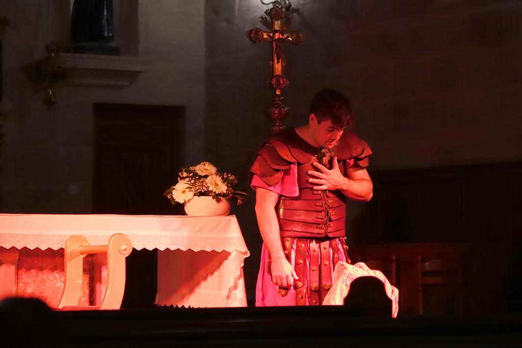 Njezina potresna fabula publici okupljenoj u franjevačkom kompleksu predstavila je svjedočanstvo rimskog centuriona Marcela Galija koji je po dolasku u Galileju dobio svoj prvi zadatak: organizirati smaknuće mjesnog revolucionara poznatog po brojnim čudesima, a čiju tuniku osvaja na kocki. Marcel je svoje pripovijedanje gradio na promjenama koje je u njemu izazvala Galilejčeva krvava tunika. On, kao ateist, odbio je ikakva nadnaravna svojstva pripisati komadu tkanine, ali uranjajući sve dublje u priču Velikog petka, shvatio je da u sobi nije sam. Kroz ispovijest o političkim spletkama, izdaji te utjecaju krvožedne rulje, Marcel Galije proveo je kroz scene suđenja, kažnjavanja i smrti kao možebitnog klimaksa. Publika je tako postala svojevrsnim zborom prikaza koje su s njim živopisno podijelile traumu toga događaja, ne sluteći u tome svoju pravu ulogu.