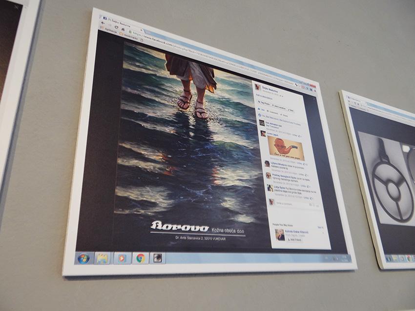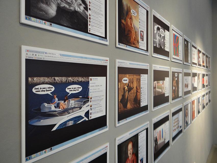 Facebook profilu, što njegovoj umjetnosti omogućuje široko otvaranje prema publici te tako s njom širokoumreženi direktni kontakt. Pritom se za vizualnu komunikaciju ponajviše koristi digitalnom fotomontažom (fotografijom u koju intervenira montažom) te stripovskim načinom tekstualnog zapisa (u formi razgovornog strip-oblačića), čime se izražava na publici blizak način, vokabularom svakodnevice. Miksajući, u popartističkom duhu, banalno, trivijalno i konzumerističko s uzvišenim i visokovrijednim, pa na humoran način izvrćući značenje i okrećući na lakrdiju. Čineći na taj način realne situacije irealnima, a irealne realnima - i time smiješnima te tako uvijek izazivajući urnebesno zabavnu reakciju, navodi Gabout. Ova izložba odabranih radova iz Badurininog bogatog Facebook-art opusa, već prikazana u Zagrebu (Galerija Forum) i Splitu (Salon Galić), a sada evo i u Krku, opipljivo svjedoči o bogatstvu suvremenog izričaja ovoga umjetnika. Svjedoči o živoj interakciji elemenata ready-madea, pop-arta (neo pop-arta) i konceptualne umjetnosti, pri čemu potvrđuje kako nije samo važna forma, nego i poruka i ideja; (s)misao, sadržaj i koncept, zaključuje Gabout.