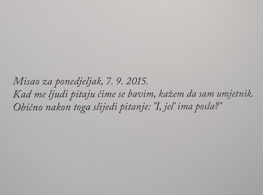Željko Badurina, kao potonji od dvoje autora okupljenih ovogodišnjim izdanjem platforme za umrežavanje različitih suvremenih vizualnih i primijenjenoumjetničkih praksi čija je tema suvremeni pop-art idiom, danas slovi kao jedan od najzanimljivijih i najduhovitijih suvremenih vizualnih umjetnika, koji aktualnu svakodnevicu kritički komentira na svoj specifičan humorističan način, nastavlja Gabout. Bilježi je on vicmaherski duhovito, ali istodobno i satirički britko, napajajući inspiraciju na zbivanjima koje njegovoj vrckavoj mašti, uvijek sklonoj šali i zafrkanciji, nudi tekuća društvena, politička, umjetnička i estradna scena. Ipak, ispod te vrckavosti krije se nešto ozbiljnije lice i kritička oštrica: protiv poplave gluposti i ignorancije; protiv konzumerizma, žutila masovnih medija i malograđanštine; protiv kiča i lošeg ukusa koje autor ismijava; protiv anomalija i zastranjenja. Svoju oštricu, međutim, on suptilno zamata u geg i duhovitu parodiju; u grotesknu šalu; u lagano izvrtanje naracije, iz čega proizlaze smiješno-apsurdne situacije; u vizualno-jezičnu zagonetku, igru riječi i paradoks, kako bi se otvorio prostor za nekakvu malu spačkicu. Za svoje radove, prenosi Gabout, ovaj autor kaže da su time specific, jer njima komentira zbivanja koja su aktualna sada i ovdje. Trenutno aktualne društvene ili političke događaje koji uvijek kreću lokano, ali završavaju globalno, na društvenim mrežama. Jer Badurina svaki svoj rad objavljuje na svom