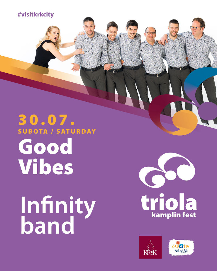 Nastavak Good Vibes koncepta, u sklopu Triola Kamplin Festa, 30. srpnja, publici će priskrbiti uzavrelu atmosferu i mnoštvo pozitivne energije, i to zahvaljujući koncertu Infinity Banda. Članove ovog profesionalnog cover sastava, kako sami kažu, spaja prijateljstvo i neizmjerna ljubav prema glazbi, a repertoar kojeg žele podijeliti s publikom seže od klasika popularnih šezdesetih godina prošlog stoljeća pa sve do suvremenog pop-rocka koji trenutno puni glazbene top ljestvice. Njihov performans nikog neće ostaviti ravnodušnim, a jedino pitanje koje vam žele postaviti je: are you ready for party? U bendu trenutno sviraju i pjevaju: Veronika Kamenar, Fran Karabaić, Igor Grubišić, Domagoj Čandrlić, Antonio Rožmarić, Erik Kamenar i Bruno Hodanić.