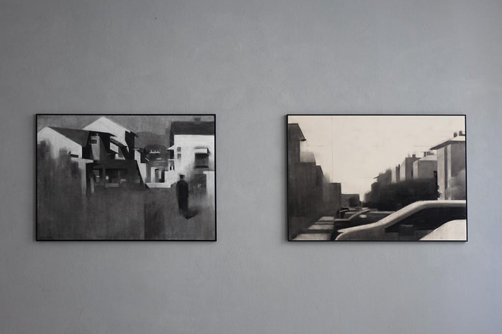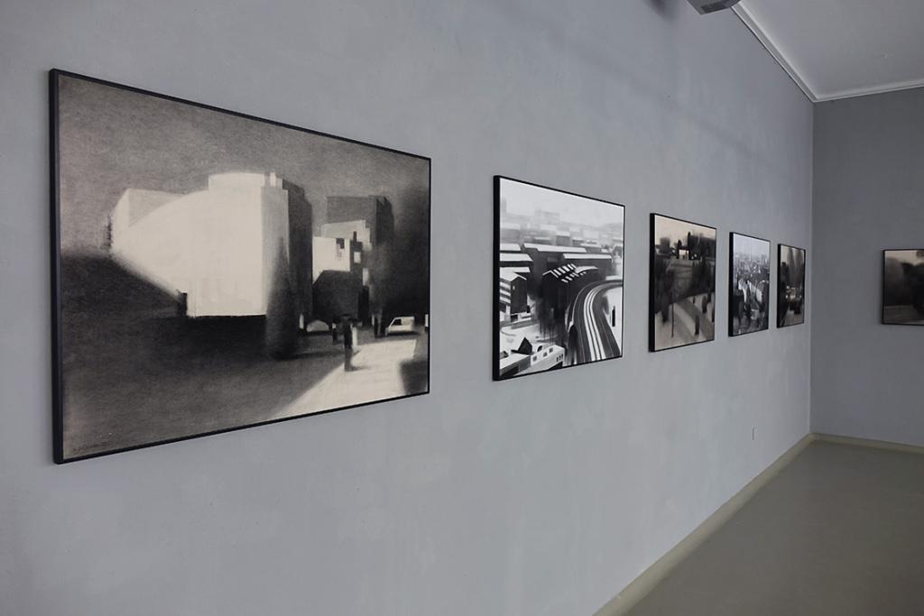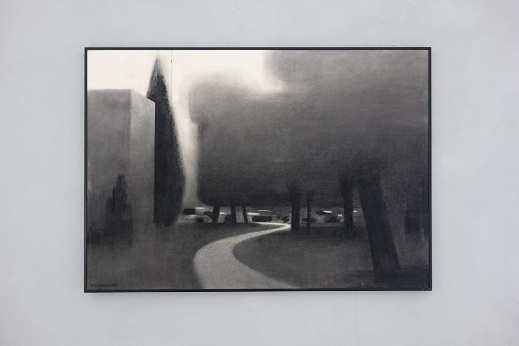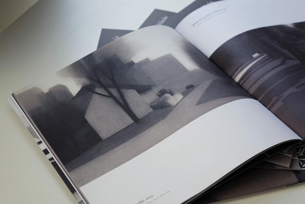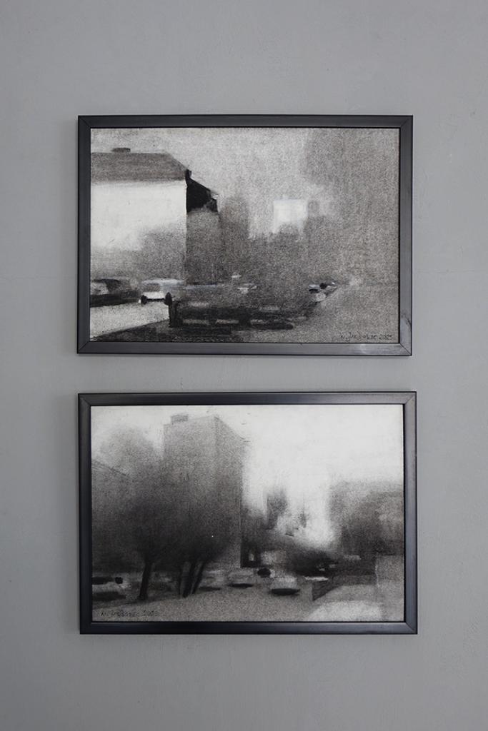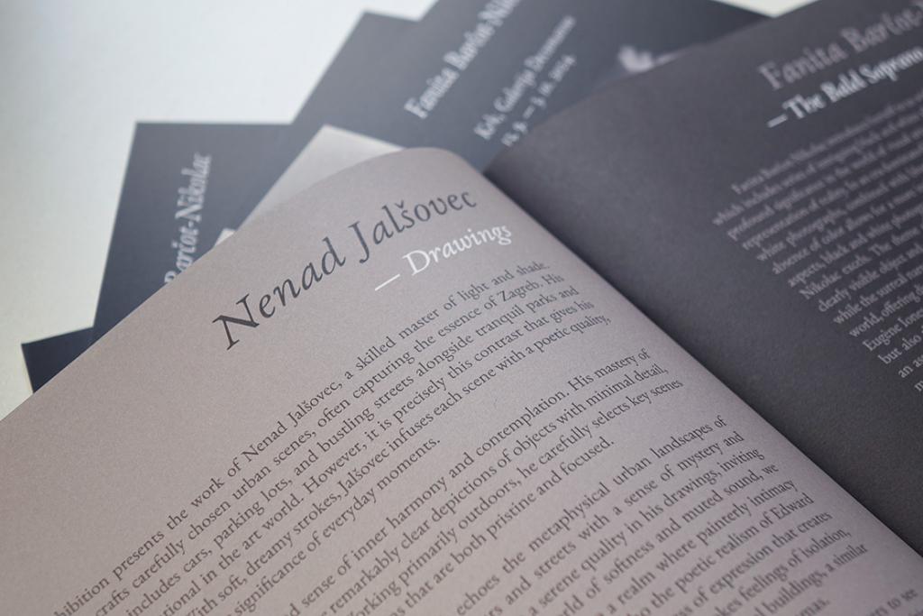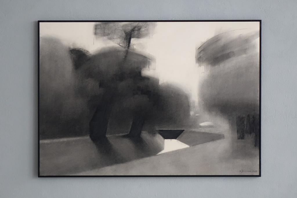 – Na desetogodišnjicu izložbenog projekta U kontrapunktu, imamo prilike susresti se s izvrsnim likovnim stvarateljima, navodi Ritoša, a ovogodišnjim izložbenim diptihom U okviru fokusiramo se na crno-bijelu tehniku, kod Nenada Jalšovca u ugljenu, a Fanite Barčot-Nikolac u fotografiji. Monokromatski izražaj izaziva posebnu atmosferu nostalgije, ali i prezentira potrebu za jasnijim sagledavanjem stvari. Raščišćavaju se prikazani objekti i svode na osnovno, naglašava se kontrast, tekstura, kompozicija. Oboje su okrenuti unutrašnjim stanjima i potrebom da iskomuniciraju proces kroz koji prolaze i intenzivne emocije koje ih zaokupljaju. Oboje rade promišljenim i postepenim tempom, snažno pokrenuti fenomenom svijetla i sjene. Spajaju ih i teme koje uključuju pitanja otuđenosti, izolacije, pokušaje komunikacije i osjećaj neshvaćenosti. Spaja ih, također, izraziti individualizam. Njihova djela prožima filozofija egzistencijalizma, pri čemu se naglašava sloboda, odgovornost i jedinstvenost pojedinca u suočavanju s vlastitim postojanjem. Ljudi su bačeni u svijet bez unaprijed određene svrhe te su odgovorni za svoje postupke i identitet, i pronalazak smisla u kaosu inherentnog besmisla. Potpuno svjesni ove istine oni na poetične načine istražuju perspektive interne stvarnosti u kontrastu s vanjskom; kod Jalšovca vanjski prostori postaju tema koja se obrađuje na intimistički način, a Barčot-Nikolac unutrašnje prostore teatralizira na van. Izložbom Crteži, tumači nadalje Ritoša, predstavlja nam se vrhunski majstor svjetla i sjene Nenad Jalšovec koji tehnikom ugljena oblikuje pomno odabrane kadrove najčešće gradskih, često zagrebačkih vizura. Scene koje rijetko susrećemo u svijetu likovnosti interesni su fokus autora: automobili, parkirališta, prometne ulice, stambene zgrade. Uz njih se javljaju stabla, parkovi, rjeđe ljudi. Ovaj neobični odabir motiva izaziva začuđujući efekt u spoju s manirom izvedbe. Meki, sanjivi, pastozni pokreti ugljenom oblikuju pjesničku impresiju i sudaraju se s banalnim prizorima parkirališta. Svaki crtež poziva promatrača da promišlja o značenju ovih svakodnevnih scena. Autorov izraz odiše snažnom unutarnjom harmonijom, osjećajem mira i kontemplacije. Oduševljava njegova sposobnost da u chiaroscuro tehnici, bez pretjeranih detalja, stvori vrlo jasne oznake predmeta. Zgrade, ulice i stabala modelira virtuoznim suptilnim naznakama linije i plohe. Svodeći objekte na najbitnije, a pri tom zadržavajući njihova glavna obilježja, prenosi dojam zamagljene fotografije. Njegov proces rada obuhvaća primarno rad na otvorenom, u skladu s plain air metodologijom, no naknadno provodi elaboraciju u domaćem okruženju. Tijekom ovog procesa, pažljivo izdvaja ključne scene i reducira elemente, što rezultira izuzetno čistim i fokusiranim kompozicijama. Ovaj minimalizam pojačava poetski aspekt njegovih radova, što ih čini usporedivim s metafizičkim urbanim pejzažima Giorgia de Chirica. Automobili koji stoje ili se kreću u vatastoj mekoći izazivaju čuđenje i nejasnost, inače simboli brzine, buke i kronične vreve gradskog života ovdje su zarobljeni u tišini te gube svoj uobičajeni smisao i postaju tajanstveni. U svijetu mekoće i zagušenog zvuka nalazimo potpunu autonomiju autora koji nas vodi u oblast gdje se slikarski intimizam stapa s vanjskim prostorom, zaključuje Ritoša.