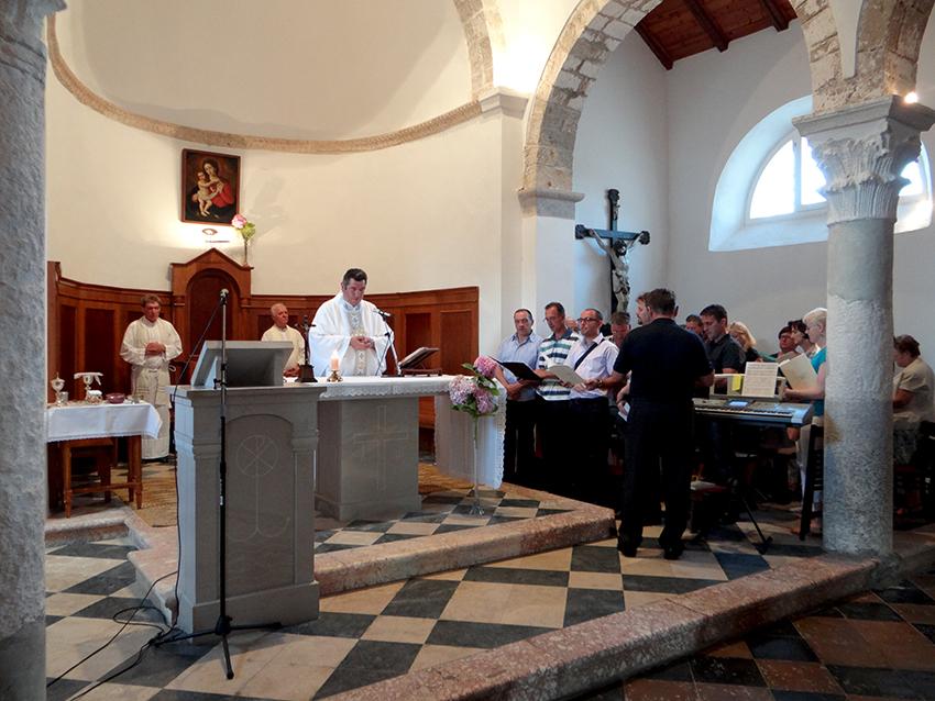 Okupljanje je tako, u ranim popodnevnim satima, zapčelo na slikovitom Trgu krčkih glagoljaša, gdje je sve pristigle, u društvu suradnika, dočekao gradonačelnik Darijo Vasilić, poželjevši im dobrodošlicu i ugodan boravak u ovome povijesnom gradu. Potom je, njima u čast, u obližnjoj crkvi Gospe od Zdravlja služeno misno slavlje što ga je predvodio krčki župnik Anton Valković, i to uz dvojicu svećenika - Antona Zeca i Antona Bozanića - koji su godinama sudjelovali u radu Hrvatske katoličke misije Bl. Ivana Merza u New Yorku. Uz neizostavni zvuk sopila, iseljenici su zatim dopraćeni do susjedne Scene Zidine, gdje im je organiziran kulturno-zabavni program povjeren uvijek zanimljivom Alenu Poliću, inače višestruko nagrađivanom izvođaču posvećenom izričaju koji uporište pronalazi u bogatoj glazbenoj baštini i narodnoj predaji Primorja. Druženje je, uz večeru, naravno u dobroj atmosferi, nastavljeno na terasi Hotela Bor gdje je okupljene vječnim hitovima zabavljao Željko Tabako, a nije na odmet spomenuti ni knjigu Damjana Miletića Zeleno i plavo na pijate koja je, kao uspomena na jubilarni, 15. Dan iseljenika otoka Krka, naposljetku uručena svim njegovim sudionicima.