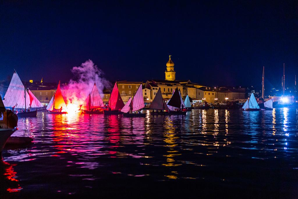 21.15, Noćni ples barki uz svjetlosno-pirotehničke efekte, krčka luka