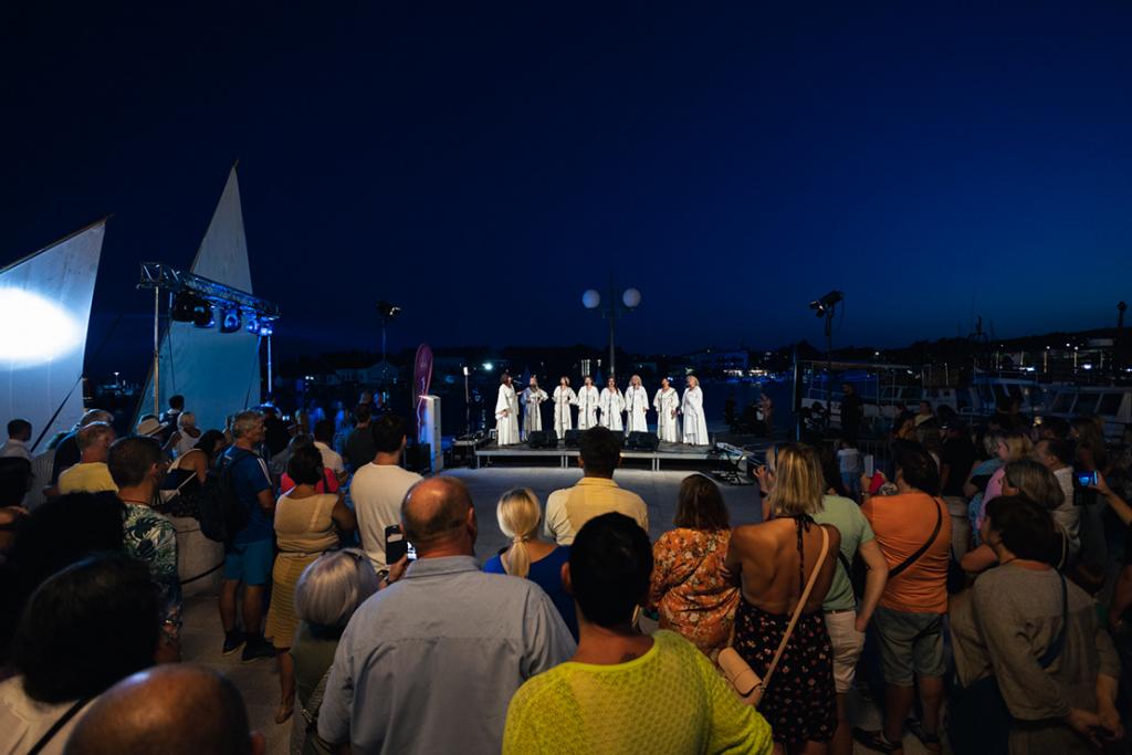 U nastavku dana, nakon popodnevne izložbe tradicijskih barki, u večernjim je satima, podno zidina Frankopanskog kaštela, priređeno sedmo izdanje atraktivnog noćnog jedrenja, i to u zaista jedinstvenoj atmosferi uz svjetlosnu i glazbenu pratnju za koju se ovom prigodom pobrinula Ženska klapa Luka, profiliravši se na domaćoj sceni, u zavidnih 38 godina djelovanja, osebujnim vokalnim izvedbama, njegujući autohtoni a capella način pjevanja te prepoznatljiv dalmatinski i primorsko-istarski izričaj. Noćni ples barki tako je, uz tradicionalnu klapsku pjesmu, još jednom demonstrirao svu svoju ljepotu i inovativnost, oduševivši brojne zaljubljenike u more i maritimno nasljeđe. A njima sigurno nisu promakla dva najtipičnija krčka i kvarnerska plovila - pasara Bodulka i guc Bodula - obnovljena 2011. i 2012. godine u namjeri očuvanja i revitalizacije pomorske, brodograđevne i ribarske baštine.