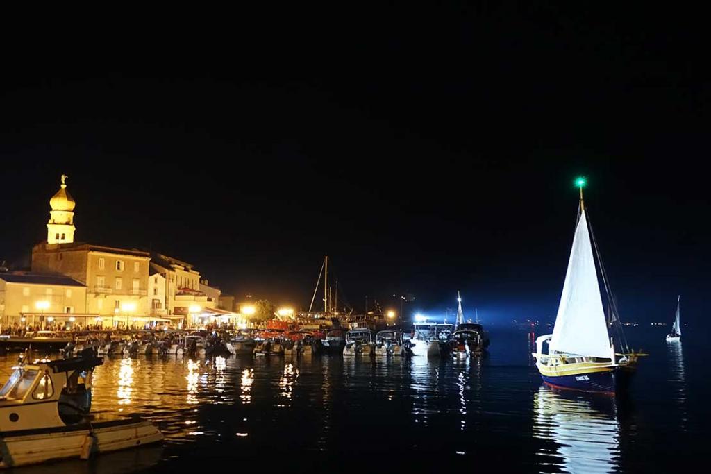 Uoči blagdana Vele Gospe, 14. kolovoza, nakon popodnevne izložbe tradicijskih barki i demonstracijskog jedrenja, u večernjim je satima, podno zidina Frankopanskog kaštela, priređeno osmo izdanje atraktivnog noćnog jedrenja, i to u zaista jedinstvenoj atmosferi uz svjetlosnu i glazbenu pratnju za koju se ovom prigodom pobrinuo Martin Kosovec, mladi zagrebački pjevač koji je srca publike osvojio pobjedničkim nastupom u posljednjoj sezoni HRT-ovog natjecateljsko-pjevačkog showa The Voice Hrvatska. Noćni ples barki tako je, uz specifične vokalne interpretacije mladog pjevača, još jednom demonstrirao svu svoju ljepotu i inovativnost, oduševivši brojne zaljubljenike u more i maritimno nasljeđe. A njima sigurno nisu promakla dva najtipičnija krčka i kvarnerska plovila - pasara Bodulka i guc Bodul - obnovljena 2011. i 2012. godine u namjeri očuvanja i revitalizacije pomorske, brodograđevne i ribarske baštine.