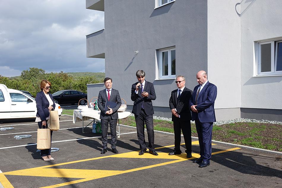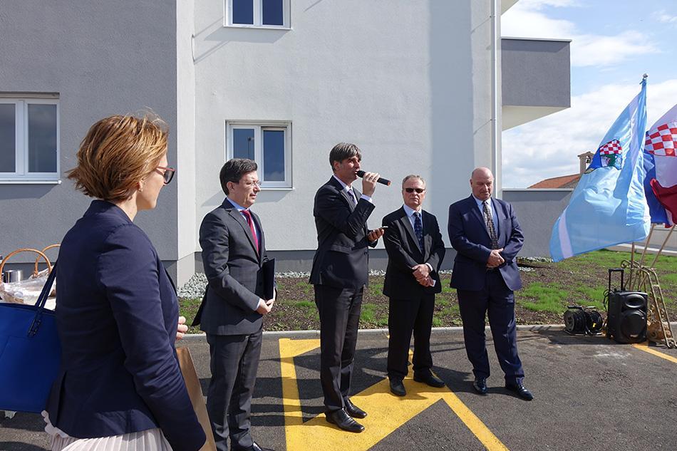 Pred samo godinu dana, podsjeća Kirinčić, na ovom prostoru bila je ledina - neizgrađeno građevinsko zemljište, a danas je pred nama zgrada s tri nadzemne i jednom podzemnom etažom u koju je smješteno 30 stanova. Posebnu zahvalu, ovom prilikom, upućujem svima koji sudjelovali u realizaciji ove investicije, u njezinoj zaista složenoj pripremi, potom financiranju i, naposljetku, izgradnji, a to su Grad Krk, Primorsko-goranska županija, Ministarstvo graditeljstva i prostornog uređenja Republike Hrvatske, Agencija za pravni promet i posredovanje nekretninama te projektantska kuća i izvođač radova. No ono što je važno naglasiti jest to da smo, naposljetku, dobili energetski učinkovit objekt s funkcionalnim stanovima i arhitekturom koja se uklapa ne samo u uži ambijent već i u širu urbanističku sliku grada Krka, ističe Kirinčić.