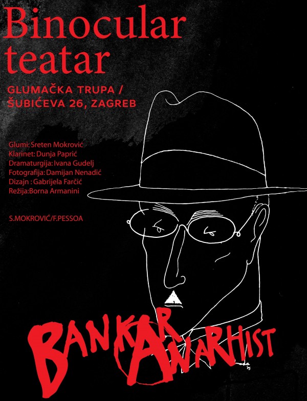 Bankar anarhist je gorko satirična monokomedija s glazbenicom, o pobjednicima i gubitnicima kapitalizma, vjerovnicima, anarhistima, bankaricama i procjeniteljima. Riječ je dijelu portugalskog autora Ferdinanda Pessoa koje progovara o čovjeku koji je uspio porobiti novac i na taj način postati slobodan. Usporedno s time predstava se bavi i u nas aktualnom temom kredita u švicarskim francima. Stoga, miješajući klasično tkivo portugalske književnosti na temu anarhizma i kapitalizma sa suvremenom dramaturgijom koja nas se itekako tiče, predstavom se nastoji pridonijeti demokratizaciji društva, zatim odgovoriti na jedno ključno pitanje, ali ujedno i zabaviti publiku. U predstavi koju je režirao Borna Armanini glumi Sreten Mokrović, dok će na klarinetu zasvirati Dunja Paprić.