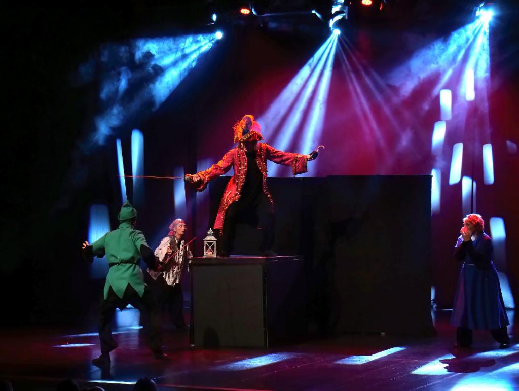 U ovoj dinamičnoj i zaigranoj predstavi čiju režiju potpisuje Matej Safundžić, glume: Andrija Krištof (Petar Pan), Matej Safunžić (kapetan Kuka, sjena), Valentina Srnojević (Wendy) i Darija Vlajnić (gusar, sjena). Scena i rekviziti djelo su: Valentine Srnojević, Branka Bankovića, Ivane Barišić i Mateja Safundžića, dok je izrada kostima bila povjerena: Krojačkom salonu KiM.