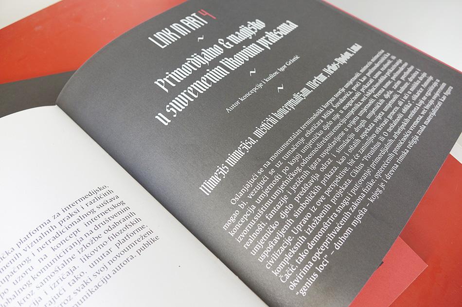 LINK-IN-ART koncipiran je kao suvremena umjetnička platforma za intermedijsko, interdisciplinarno i multimedijsko umrežavanje različitih suvremenih vizualnih praksi i različitih konceptualnih strategija, u svrhu oblikovanja otvorenog, pristupačnog i netradicionalnog sustava suvremene vizualne komunikacije. Projekt su 2014. godine osmislili kustosi Višnja Slavica Gabout i Igor Gržetić po uzoru na koncept internetskog umrežavanja (na što asocira i nazivom) te direktnog, brzog i globalnog komuniciranja na društvenim mrežama, nudeći kroz matricu odabrane teme, interpretirane kroz samostalne izložbe odabranih autora, kreativni model umrežavanja autora, autorskih koncepcija i izričaja, likovno-filozofskih ideja i umjetničkih strategija te medijskih praksi i pristupa. Stvarajući tako, unutar platforme, intrigantni multidimenzionalni i multisegmentni vizualni sklop, koji kroz svaki svoj novoumreženi link uspostavlja živu i interaktivnu (često i društveno - osviještenu) komunikaciju autora, publike i zajednice. Ovogodišnje, četvrto izdanje LINK-IN-ART platforme kustoški potpisuje krčki vizualni umjetnik Igor Gržetić, ujedno i autor predgovora kataloga, čiji dio donosimo u nastavku.