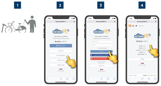 Slikovne upute za najam bicikle: