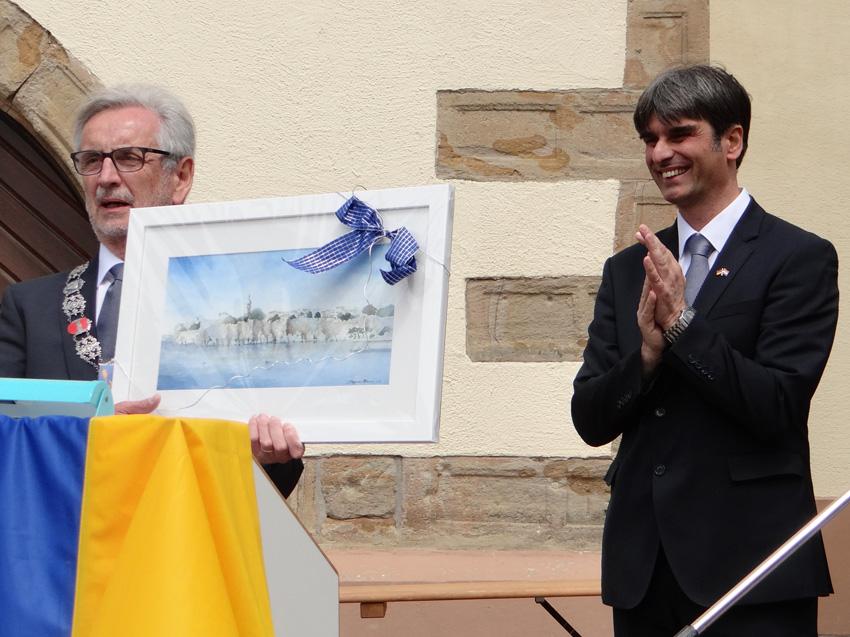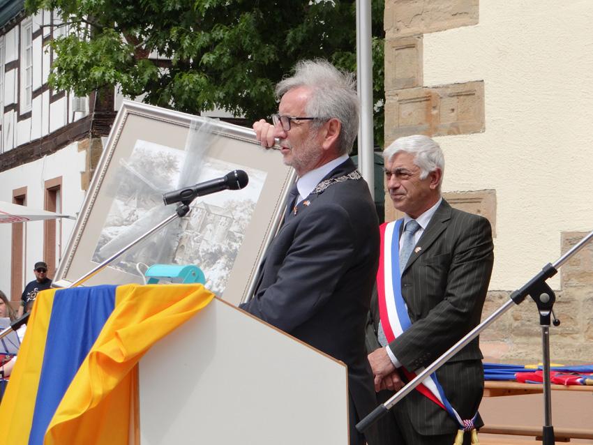 Izuzetno me raduje, ističe u svome uvodnom govoru gradonačelnik Seebald, da su na svečanost u povodu četrdesetogodišnjeg jubileja našeg partnerstva s Rognacom te proslave novog partnerstva s Krkom iz Provanse u Falačko Poranje pristigli mnogi. Upravo je to dokaz da naše prijateljstvo i nakon svih tih godina još uvijek živi te da ljudi koji ga gaje to čine s posebnom odanošću i angažmanom.
