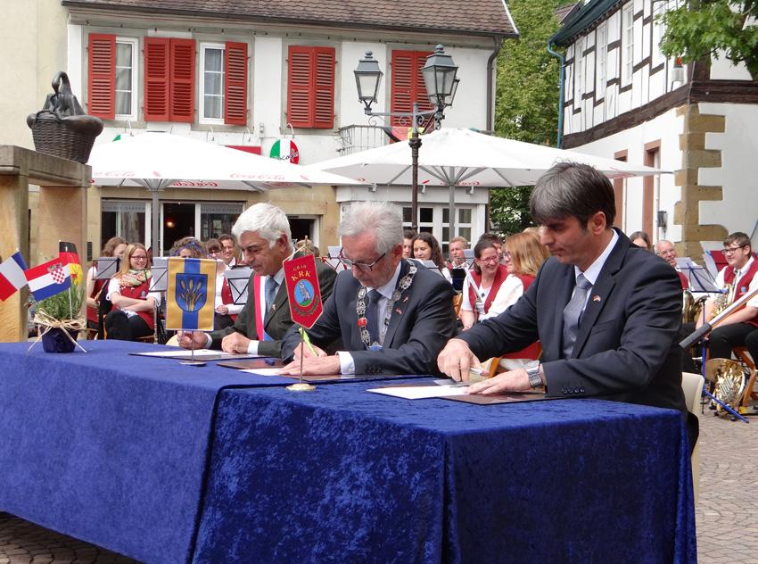 Tom prigodom pred punim auditorijem među kojima su svoje mjesto pronašli članovi gostujućih delegacija te generalni konzuli Hrvatske i Francuske, Josip Špoljarić i Sophie Làszlo, predstavnici grada Rockenhausena, Rognaca i Krka, gradonačelnici Karl-Heinz Seebald, Jean-Pierre Guillaume i Darijo Vasilić, potpisali su Povelje partnerstva.