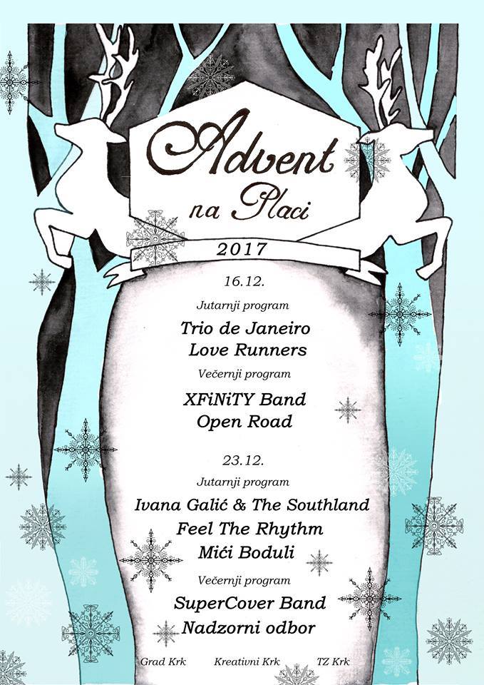 Na glavnom gradskom trgu, između 15. i 17., te 22. i 24. prosinca 2017. godine, bit će priređeno četvrto izdanje blagdanske sajmeno-glazbene priredbe Advent na Placi, i to u režiji Udruge Kreativni Krk kojoj i ove godine organizacijsku podršku pruža Lokalna akcijska grupa Kvarnerski otoci, a financijsku Grad Krk i Turistička zajednica Grada Krka.