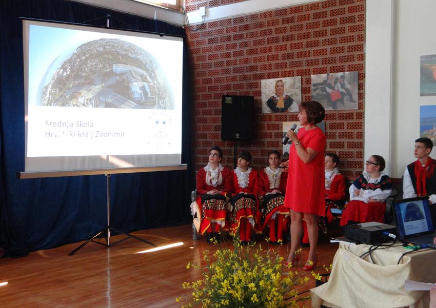 U svom pozdravnom govoru, pred okupljenim učenicima, profesorima i mnogobrojnim uzvanicima, ravnateljica Srednje škole Hrvatski kralj Zvonimir Đurđica Cvitkušić, predstavila je sudionike priredbe povezane s ove godine odrađenim školskim projektima kojima su naši srednjoškolci, upustivši se u istraživanja, težili ukazati na pravo bogatstvo otočne kulturne i tradicijske baštine, da bi potom prezentirala najznačajnije ovogodišnje školske aktivnosti, koje, iako nisu bile dijelom obrazovnog procesa, krasi značajna odgojna uloga.