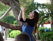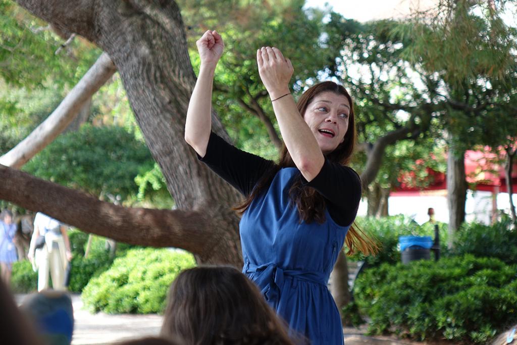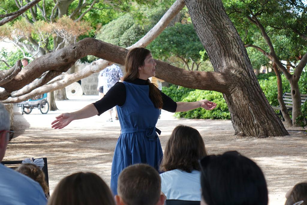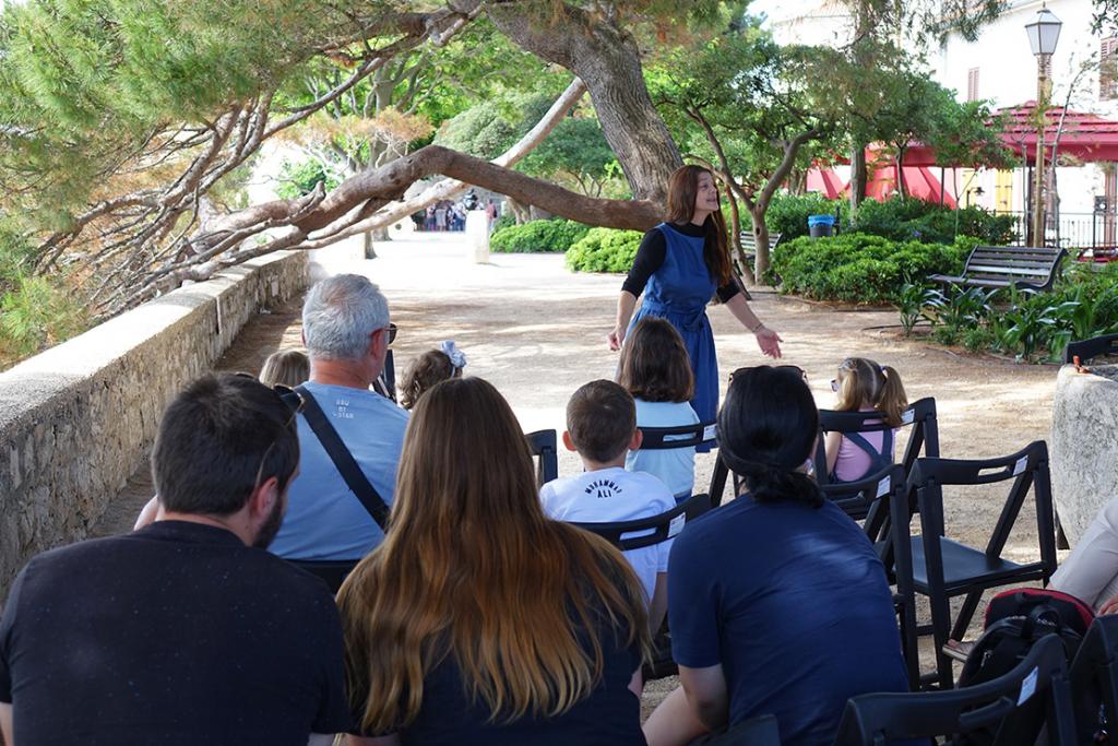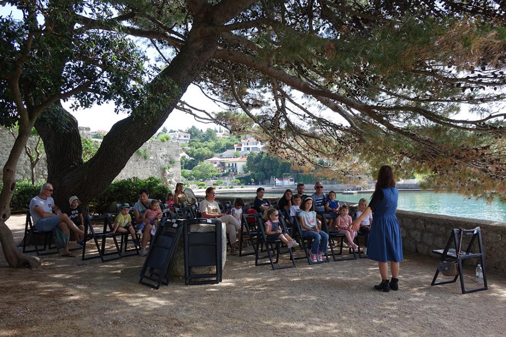 Dvije besplatne pričaonice bajki Ivane Brlić-Mažuranić u slikovitom, borovim krošnjama natkrivenom perivoju nadomak Trga Kamplin, pred okupljenim mališanima, održala je pripovjedačica Sabina Gvozdić, s time da je u sklopu prve predstavljen Regoč i još jedna kraća narodna priča, a u sklopu druge Sunce djever i Neva Nevičica te po jedna narodna i Grimmova priča.