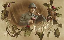 Skomno istraživanje položaja malenog čovjeka, uglavnom mimo njegove volje, uguranog u vihor ratnih zbivanja, nakon izložbe razglednica s na prvi pogled neobičnim motivom mačke i ciklusa uskršnjih razglednica, zatvara se postavom božićnih čestitki (iz zbirke talijanskog kolekcionara Piera Pazzija), i ovog puta ispisanih u nemilim vremenima Velikog rata (1914. - 1918.). I dok je mačka u društvu vojnika ilustrirala njihovu težnju za domom, tipični, mnogi bi kazali i banalni, najprije uskršnji, a sada i božićni motivi, otkrivaju nam činjenicu kako i u najtežim životnim prilikama, poput onih izazvanih strahotama rata, nailazimo na čovjekovu projekciju nade jasno usmjerenu prema nešto boljoj, vedrijoj i sretnijoj sutrašnjici. Promišljen spektar božićnih simbola (u ovome slučaju spretno isprepletenih ikonografijom rata), poput anđela navještenja, girlandi, adventskih vjenčića, grančica imele, upaljenih svijeća, zvončića, okićenih stabalca ili simpatičnih puta, jasno nam govore da su i vojnici suprotstavljenih strana dijelili mnogo toga zajedničkog. Boreći se, sanjali su mir, iskren zagrljaj i obiteljsku sreću, a upravo nam na to iskreno ukazuju lica i naličja izložbom prezentiranih povijesnih čestitki.