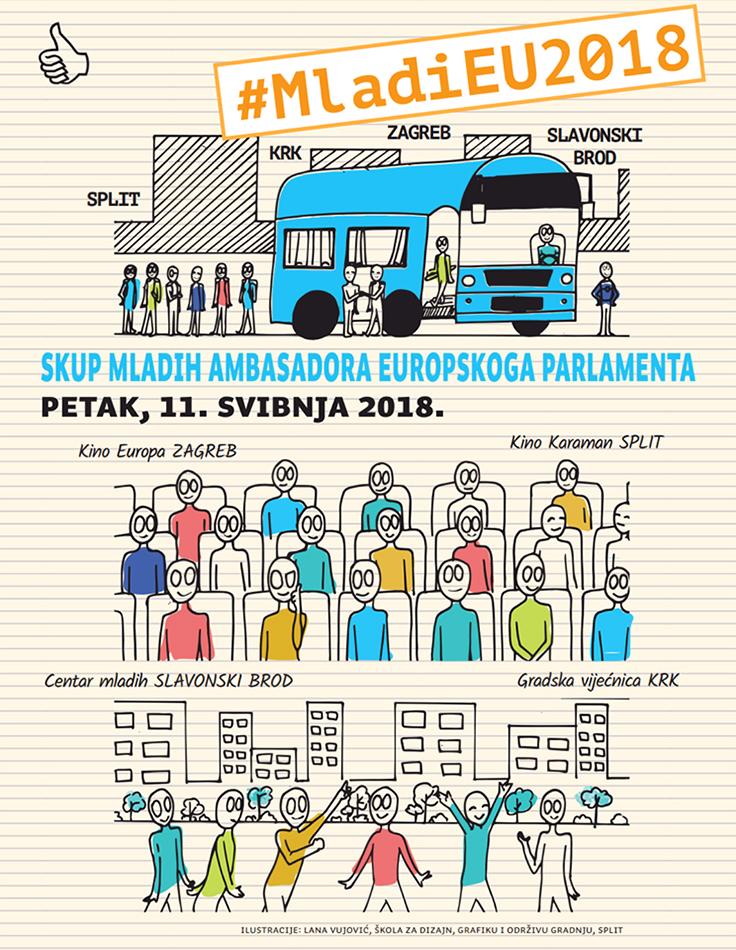 Naime, Ured Europskog parlamenta u Hrvatskoj po drugi put organizira veliko druženje srednjoškolaca, iz čak 25 hrvatskih škola, koje će se pored Krka, u isto vrijeme, odvijati na još tri lokacije: u Zagrebu u Kinu Europa, u Splitu u Kinu Karaman te u Centru mladih u Slavonskom Brodu. S mladim ambasadoricama i ambasadorima u Zagrebu će se družiti zastupnice u Europskom parlamentu Dubravka Šuica, Marijana Petir i Ivana Maletić, a u Slavonskom Brodu zastupnik Jozo Radoš. Pored njih u Krku će, u motivacijskom dijelu programa, gostovati Tvrtko Barun, dobitnik priznanja Europski građanin, ujedno i voditelj Isusovačke službe za izbjeglice u jugoistočnoj Europi, u Zagrebu modna dizajnerica Aleksandra Dojčinović, a u Slavonskom Brodu direktor marketinga Nogometnog kluba Osijek Alen Nađsombat. Samo događanje moderirat će Iva Šulentić u Krku, Frano Ridjan u Zagrebu, Marijana Batinić u Splitu i Ivan Vukušić u Slavonskom Brodu.