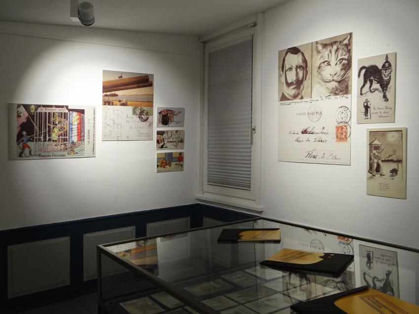 Tragedija Velikog rata, nastavlja Parentić, u vremenu obilježavanja stogodišnjice od njegovog početka, na ovoj je izložbi prikazana na jedan posve neočekivan način, i to s namjerom da se prisjetimo onih malenih ljudi koji su postali žrtve politike velikih carstava. Možda je Balzac bio u pravu kada je kazao da u očima mačke boravi nebo, a u njezinoj duši pakao. Ta igra dualnosti dovela nas je do čovjeka kojeg nikad nije smatrala svojim gospodarom već isključivo prijateljem u čijim se očima ogleda pakao, a u čijoj je duši nebo. Upravo te (anti)teze omogućile su da mačka pronađe svoju ulogu u Velikom ratu. Ono što ovaj postav kojeg tvori stotinjak povijesnih razglednica, posuđenih iz zbirke venecijanskog kolekcionara Piera Pazzija, čini osobito zanimljivim upravo je taj na prvi pogled neobičan motiv, motiv mačke koja je ovog puta uskočila u mnoge uloge na različite načine povezane s ratnim zbivanjima drugog desetljeća 20. stoljeća. Na nekim razglednicama ona je tako postala ozbiljni propagandist iliti medij za promociju političkih ciljeva što znači da je možemo vidjeti u okrilju zastava zaraćenih strana ili kako naoružana suvreno korača bojištima, međutim u najvećem dijelu, u društvu vojnika s jedne i njihovih iščekivanjem pogođenih obitelji s druge strane, ona ipak biva svojevrsni okidač sjećanja i nostalgije za domom, težnji za strašću i ljubavlju, ali i sveprisutne vjere u nadolazeći mir. Tako iskomunicirana mačka je pretvorena u simbol manifestacije želja običnih ljudi u nimalo lakim ratnim vremenima.