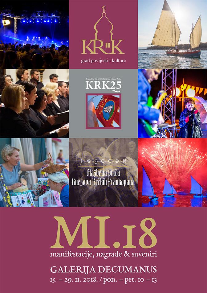 Izložbu MI.18 - manifestacije + nagrade + suveniri, čiju organizaciju zajednički potpisuju Grad Krk i Turistička zajednica Grada Krka, svi zainteresirani imat će prilike, do 29. studenog, razgledati svakim radnim danom od 10.00 do 13.00 sati ili uz prethodnu najavu na tz@tz-krk.hr.