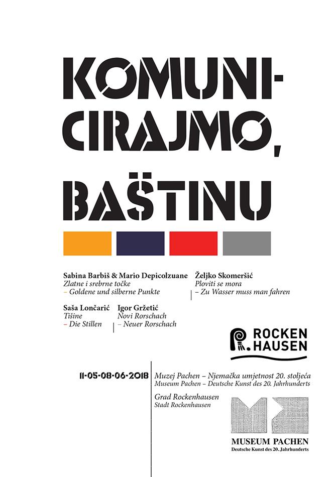 Otvorenje izložbenog projekta Komunicirajmo baštinu, u Muzeju Pachen u Rockenhausenu, održat će se 11. svibnja 2018. godine, u večernjim satima, a svečanoj atmosferi sigurno će pridonijeti i nastup članova Folklornog društva Kornić, koji će, vezujući se uz izložbeni segment Zlatne i srebrne točke, ponovo materijalizirati vizualiziranu pučku glazbu, točnije prenijeti je u tonove, i to glasom i sopilama, a sve kako bi njemačkoj javnosti predstavili jedan od najoriginalnijih glazbenih fenomena, uopće. Izložbu, koja ostaje otvorena sve do 08. lipnja, prati prigodan, dvojezični katalog, u kojem recenziju potpisuje mr. sc. Milica Žužić. Financijsku podršku projektu osigurali su Ministarstvo kulture Republike Hrvatske, Primorsko-goranska županija, Grad Krk, Turistička zajednica Grada Krka i Grad Rockenhausen.
