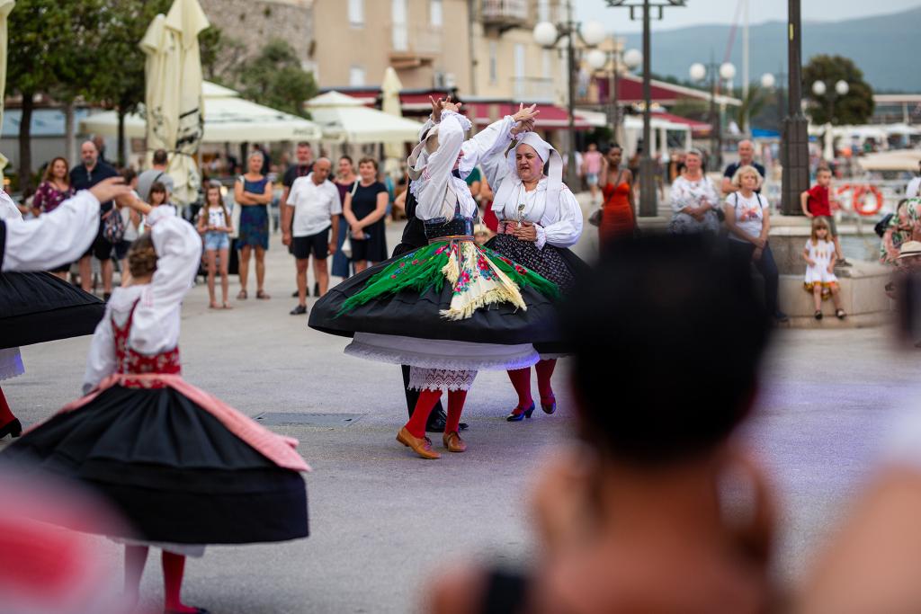 Pa, krenimo redom. Lokalna folklorna društva - Folklorno društvo Poljica, Kulturno-umjetničko društvo Vrh i Kulturno društvo Kornić - svojim nastupima na središnjem gradskom trgu Veloj placi i rivi posjetitelje su upoznali s tradicijskim krčkim plesovima i narodnim nošnjama te jedinstvenim glazbenim slogom - dvoglasjem tijesnih intervala Istre i Hrvatskog primorja - koji je kao jedan od najspecifičnijih i najkompleksnijih stilova folklorne glazbe, uopće, 2009. godine upisan na UNESCO-vu listu nematerijalne kulturne baštine čovječanstva. Dodajmo tome kako su stopama ovog prepoznatljivog folklorno-umjetničkog izričaja, u smislu priznavanja njegove kulturne i kulturološke vrijednosti, krenuli i krčki tanci (plesovi), zasluživši status kulturnog dobra Republike Hrvatske.