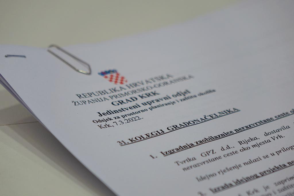 Tijekom razmatranja tema Odsjeka za prostorno planiranje i zaštitu okoliša, raspravljeno je i prihvaćeno idejno rješenje za projekt Izgradnje zaobilaznice nerazvrstane ceste oko naselja Vrh čija je izrada bila povjerena tvrtki GPZ d.d. iz Rijeke, a koje će se, radi ishodovanja mišljenja, sada proslijediti Mjesnom odboru Vrh. Pored toga, analiziran je i prihvaćen troškovnik kojim su radovi na rekonstrukciji javne rasvjete kod sjedišta Općinskog suda u Crikvenici, Stalne službe u Krku (Ul. Kralja Tomislava, dio do Bodulske ulice) procijenjeni na 49.861,25 kn s uračunatim PDV-om.