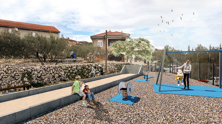 Projektno rješenje novog igrališta tako podrazumijeva uređenje partera na solidnih 260 kvadrata duž kojeg će se ugraditi šest igrala sa sigurnosnim (EPDM) gumenim zonama, obične klupe i piknik klupe, koševi za otpad, nova ograda te po površini rasporediti riječni oblutak granulacije od 4 - 8 milimetara, dok će se u znak poštivanja tradicije sačuvati i obnoviti postojeće boćalište zajedno sa skladištem za boćarsku opremu. Dotrajale će se sprave, klupa i ograda ukloniti. Također, na ulazu u igralište montirat će se nova ograda s vratima kako bi se onemogućilo istrčavanje djece na obližnju prometnicu.